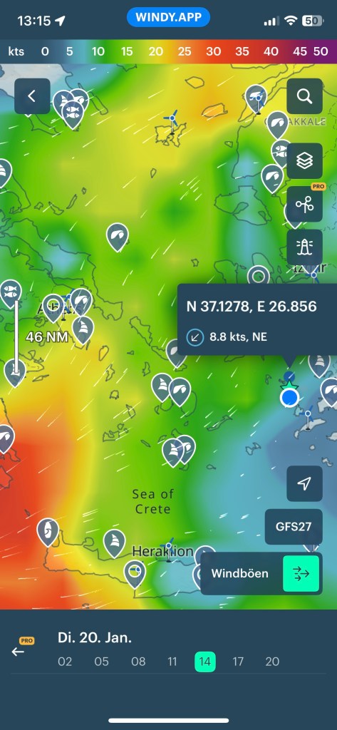Lediglich 5°C ist für eine griechische Insel zu wenig – aus meiner Sicht begrüßt uns 2026 unfreundlich!