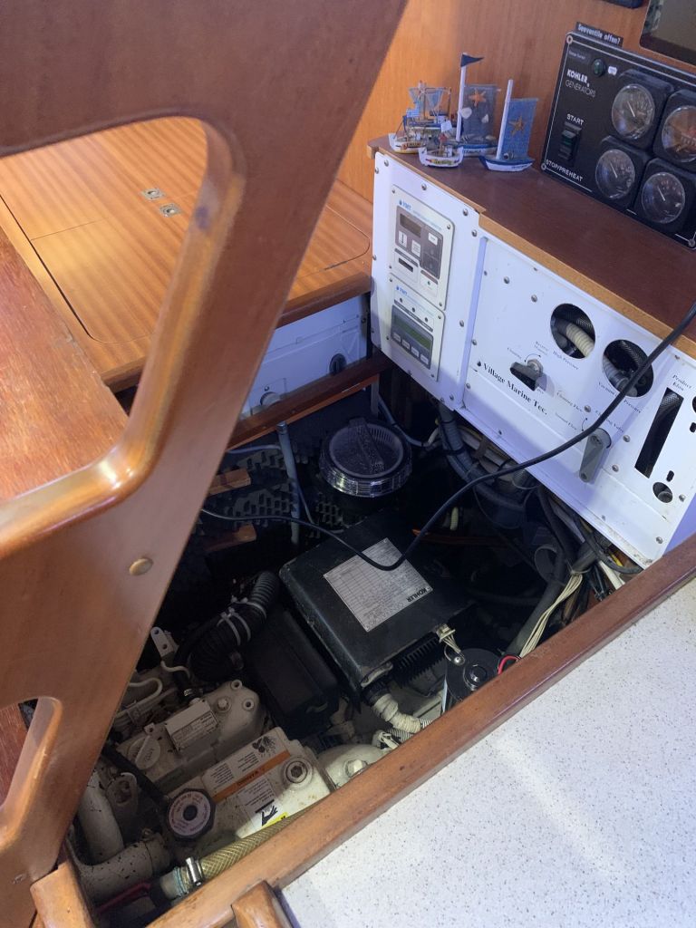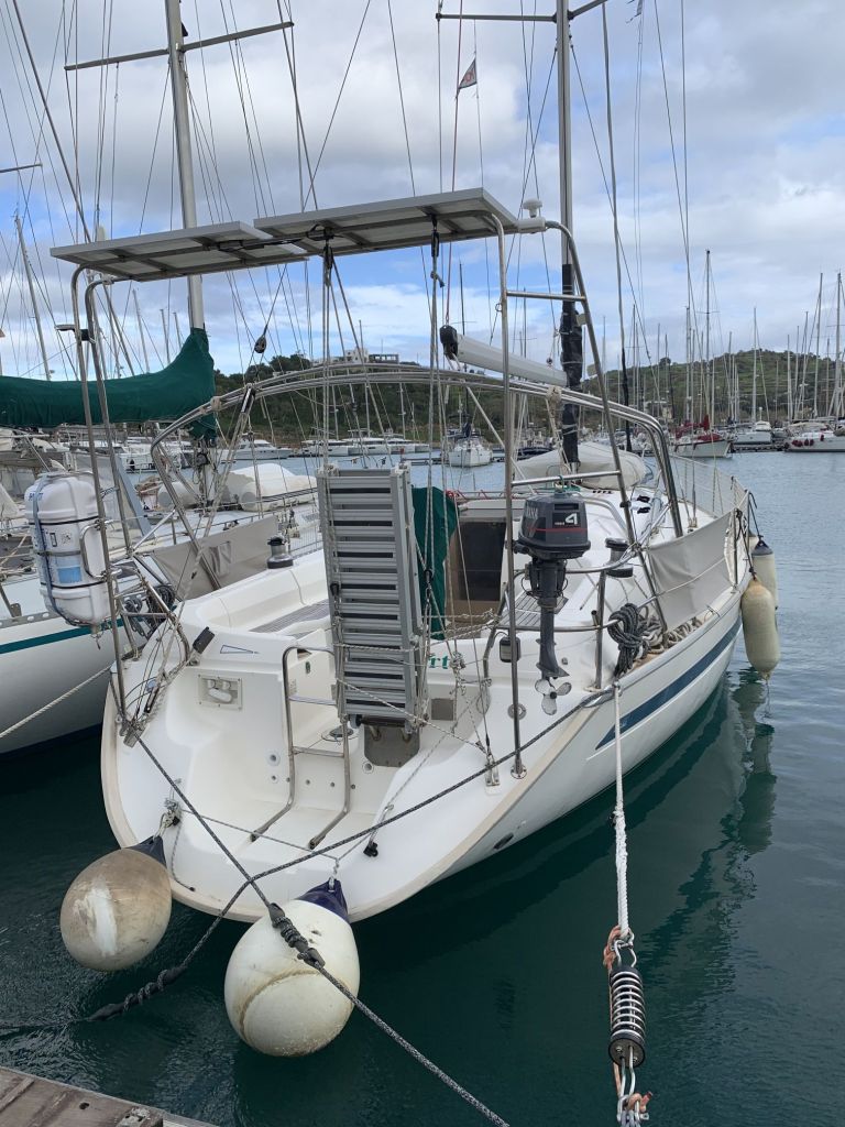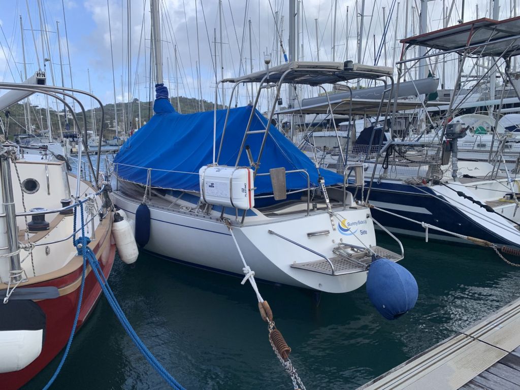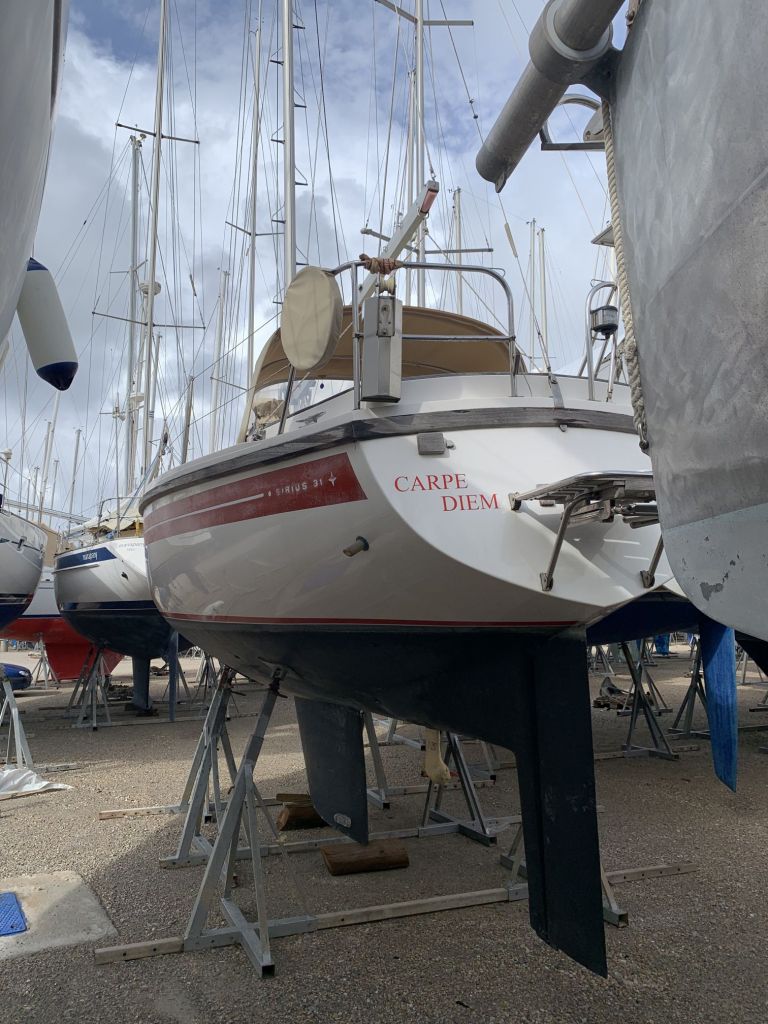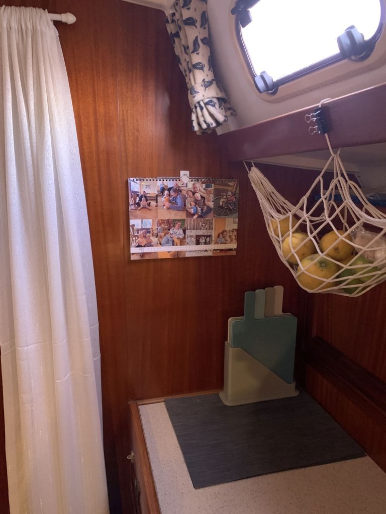 KEONDA ist unter einer Vollplane und die Segel sind im Salon.