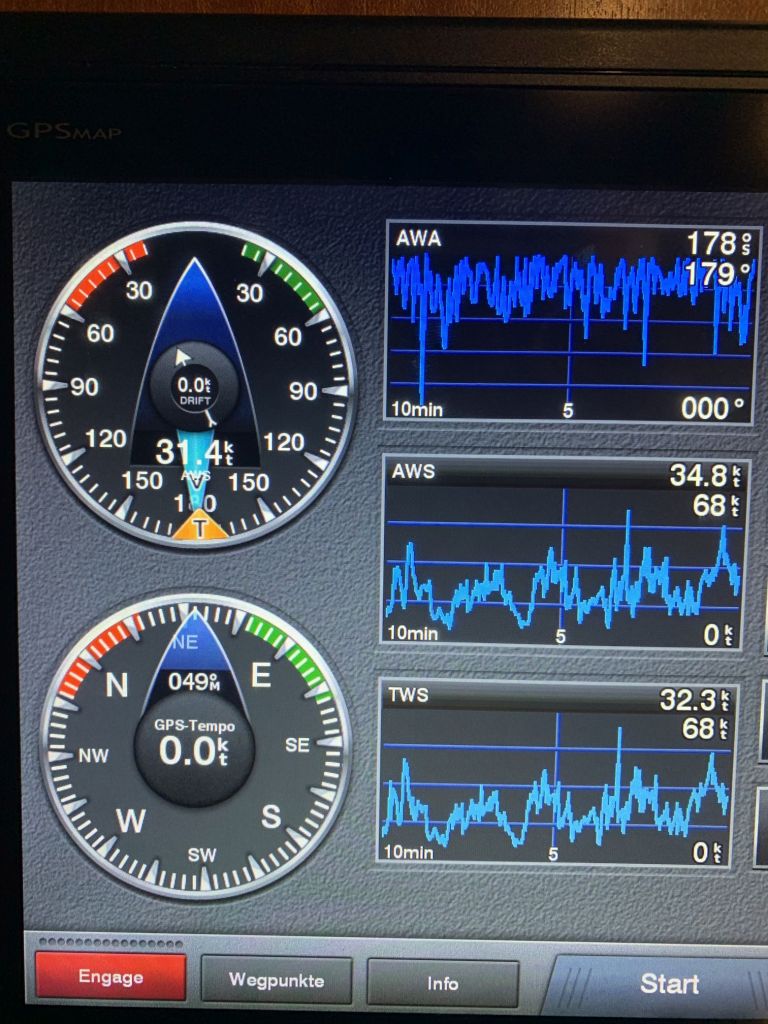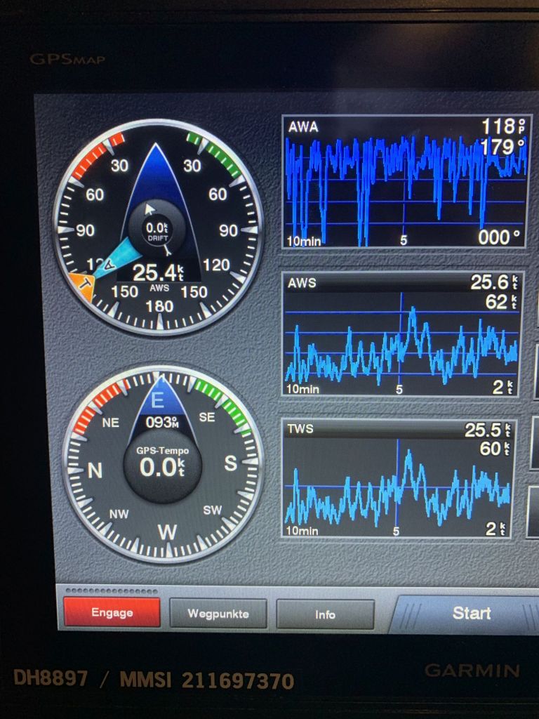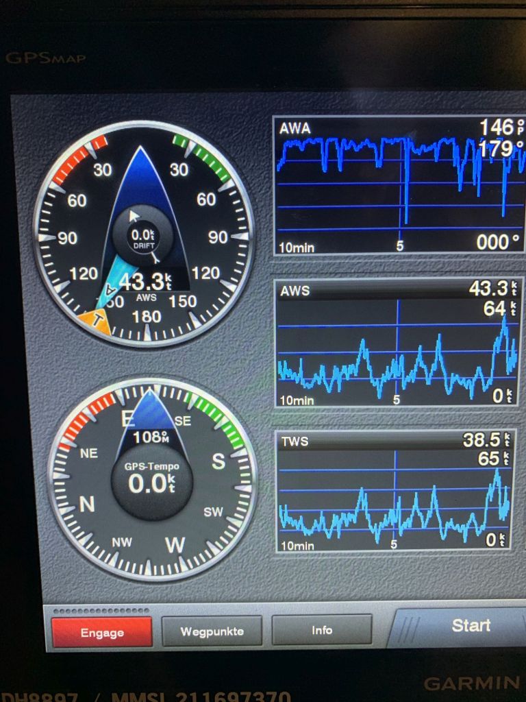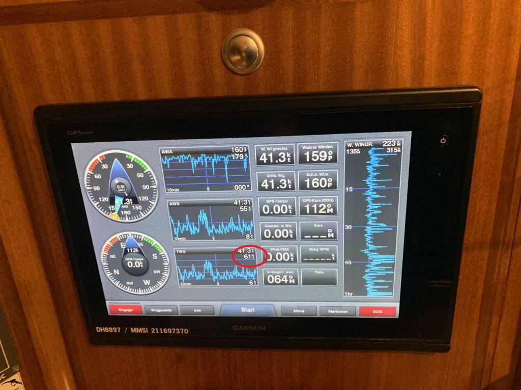 Am Schiff war alles ok, den Verklicker und leider auch den Windmesser hat der Hagel kaputtgeschlagen.