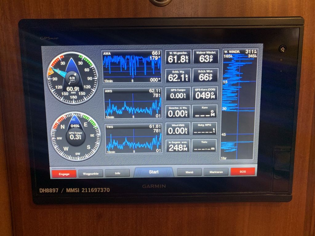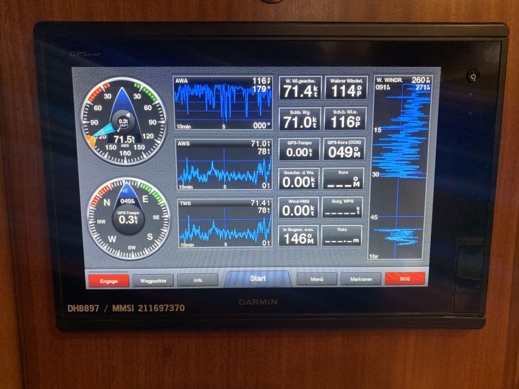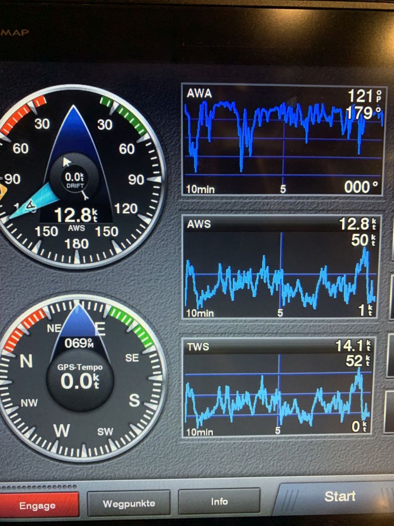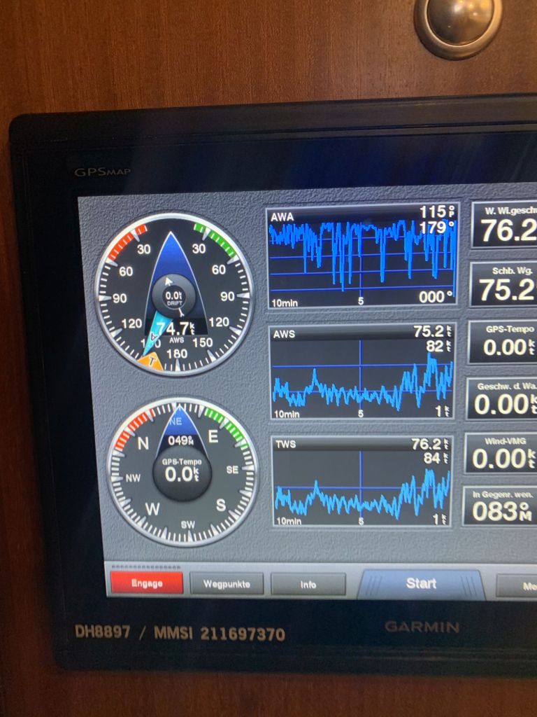 Am Schiff war alles ok, den Verklicker und leider auch den Windmesser hat der Hagel kaputtgeschlagen.