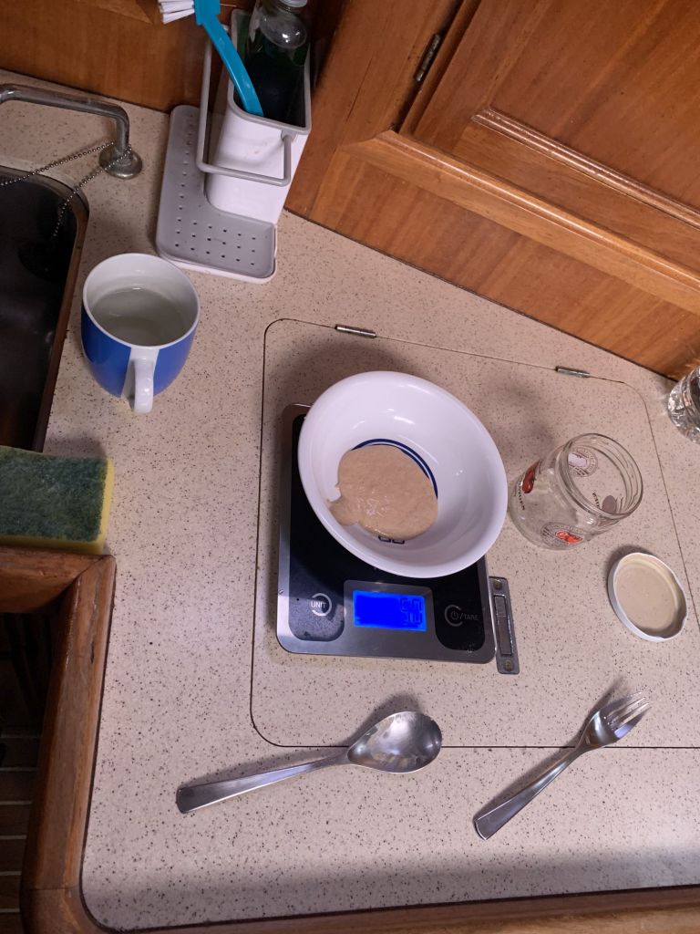 Am neuen Morgen muss ich eine verantwortungsvolle Aufgabe übernehmen – ich muss Sibylles Sauerteig füttern.