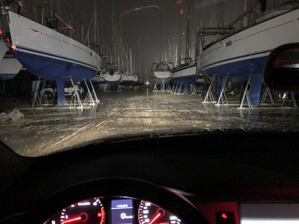 Der Abend klingt aus, Alex kämpft sich gegen den Sturm zurück zu ANAHITA und Sibylle und ich nehmen uns vor, dass wir morgen bei den Schiffen der Freunde nach dem Rechten sehen würden.