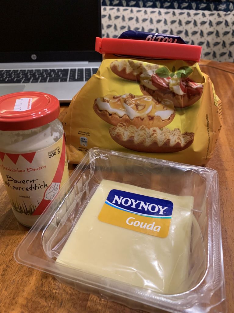 Mittags mache ich mir einen Snack, ich habe Hunger und es müssen Reste aus dem Kühlschrank gegessen werden – ich mache, man glaubt es kaum, Brotzeit!
