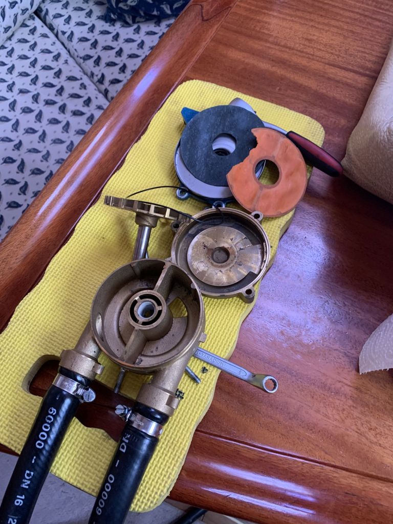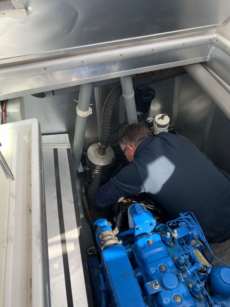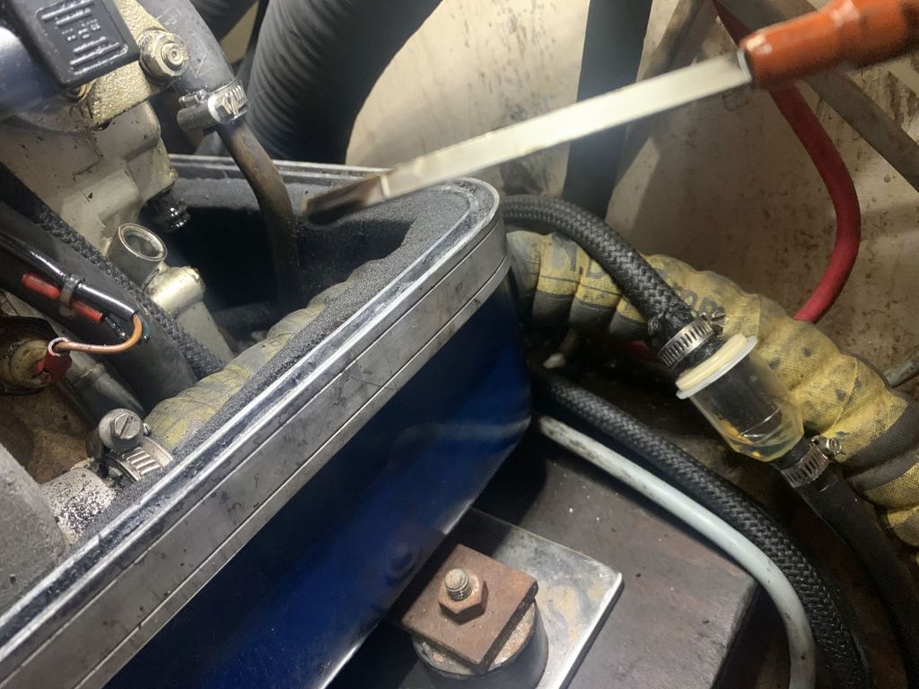 Ich beginne mit dem Dorn in meinem Fleisch – dem Generator des Eidgenossen. Eine letzte Diagnostik, ich finde einen weiteren durchgescheuerten Schlauch, welcher aber unter dem Aggregat durchführt. Das ist widerrum so schwer, dass ich es alleine nichtmal „lupfen“ kann. Ich stoppe das, rufe den Schiffseigner an und erkläre, dass ich gerne helfe, aber nur wenn wir das Ding ausbauen und komplett revidieren – SO kann man nicht arbeiten!