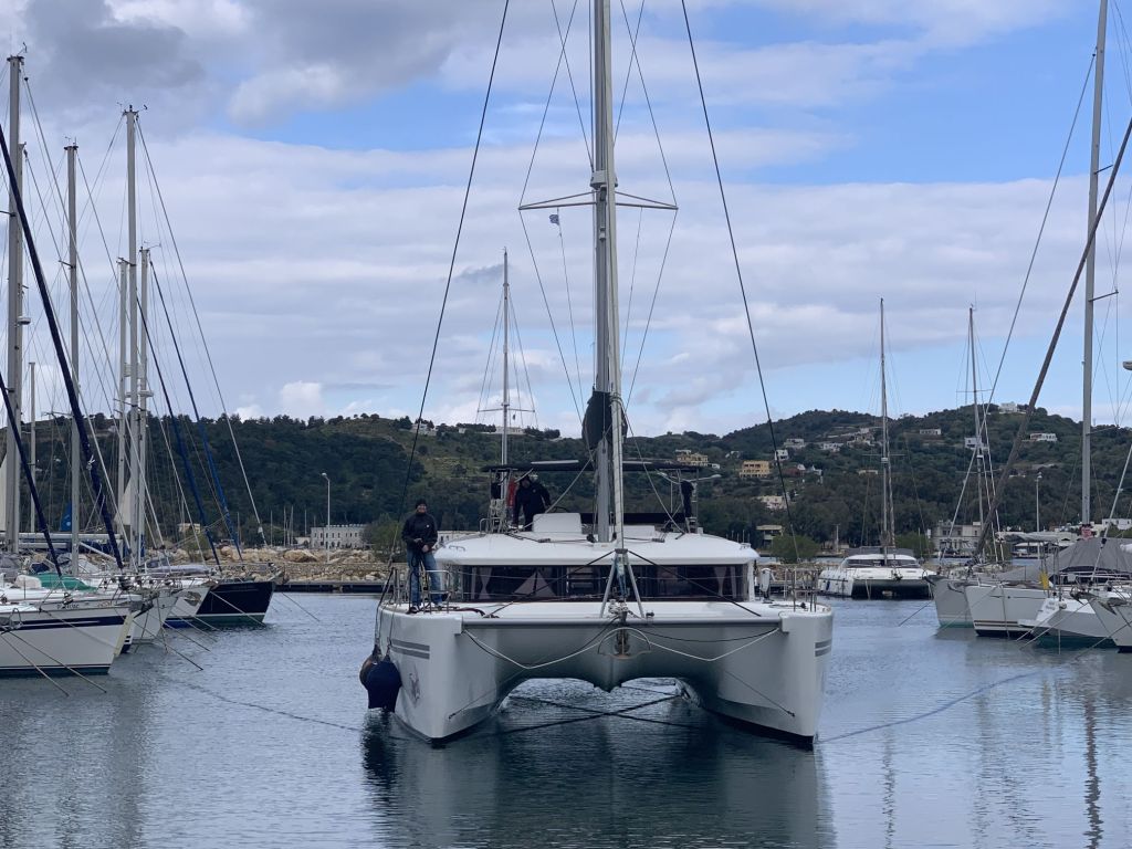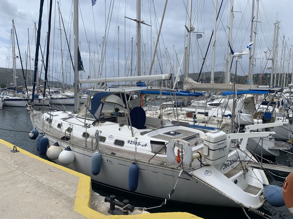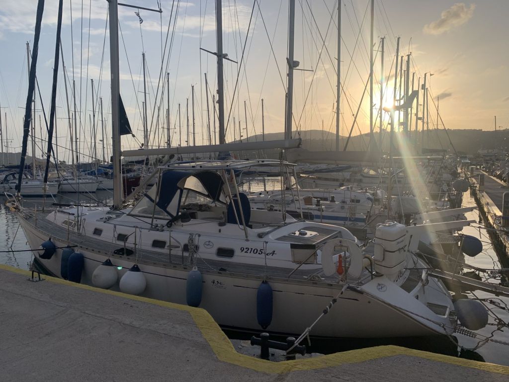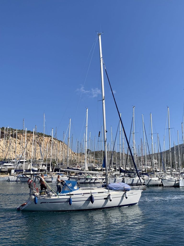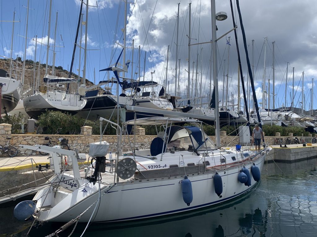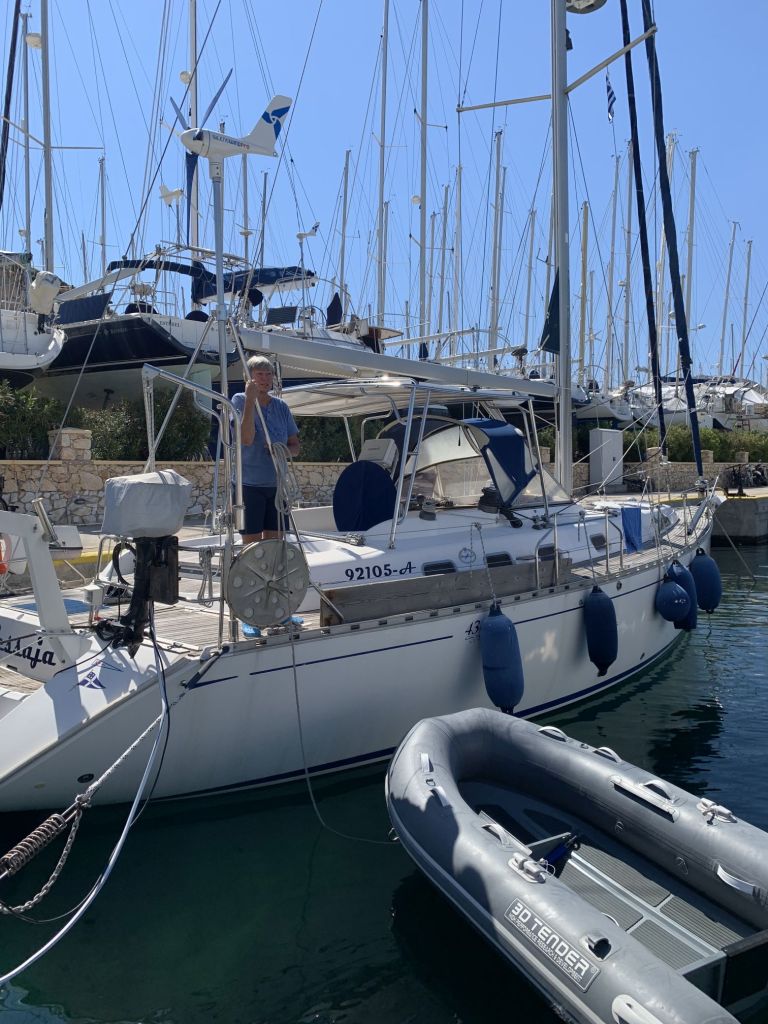 Unser Schwesterschiff, eine der raren Dufour 43CC verabschiedet sich! Die MONEYPENNY mit Judith und Alistair an Bord läuft aus, um griechische Gewässer unsicher zu machen. Im Herbst kehren sie zurück, wir werden uns wiedersehen.