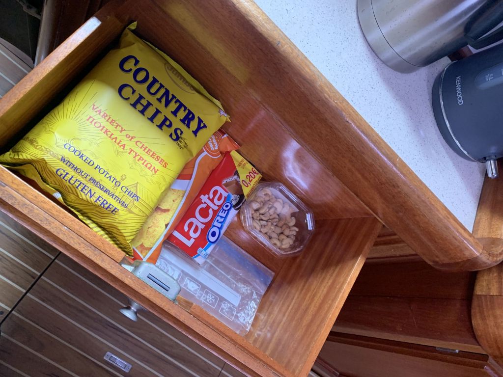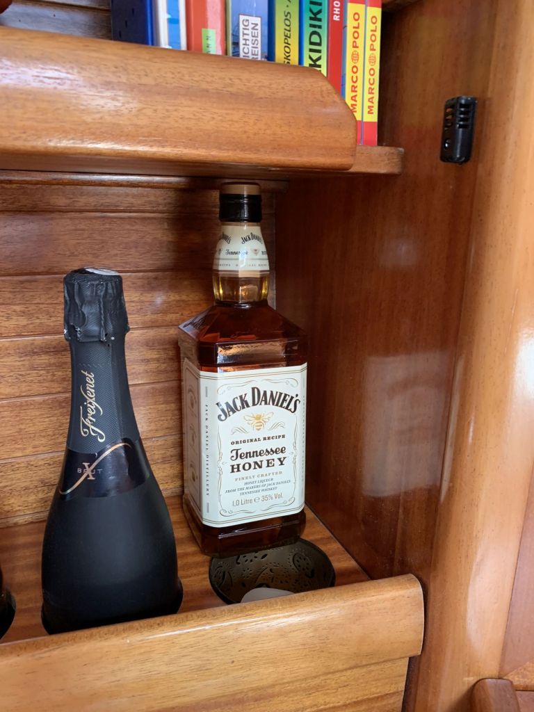 Am frühen Abend ist es vollbracht – trotz des ganzen Ärgers findet die sperrige aber notwendige Box mit unseren Spraydosen einen adäquaten Platz und ich habe einen ungenutzten Raum in Stauraum verwandelt – wenn mir das jetzt noch mit Wasser und Wein gelänge, ich wäre am Ziel meiner Wünsche!