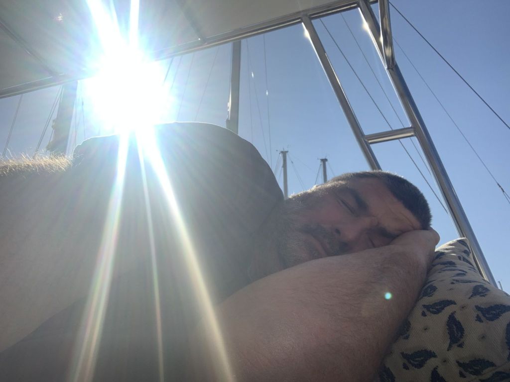 Und was für einer! Herrliches Wetter, Sonnenschein, Wärme – ich will an Deck arbeiten und nehme mir vor, den Punkt „Mastwagen für Spinnakerbaum montieren“ wegzuarbeiten.