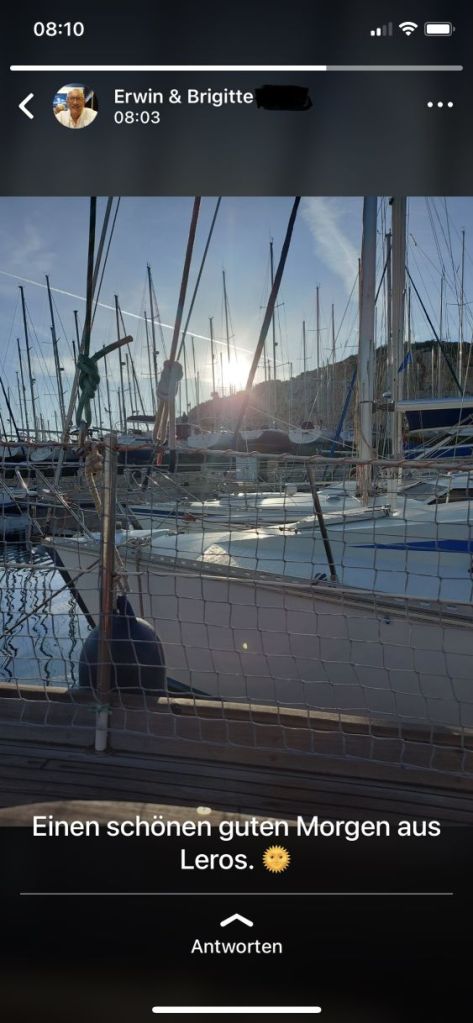 Besonders Axel war sehr interessiert an unserer Lebenssituation, er sei auch schon einmal gesegelt, er stellte viele Fragen. Das hat mich so außerordentlich gefreut, dass ich die Beiden eingeladen habe, ein paar Segeltage mit uns zu verbringen – mal sehen ob was draus wird.