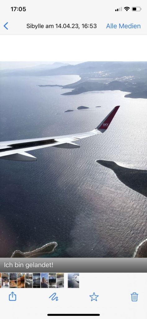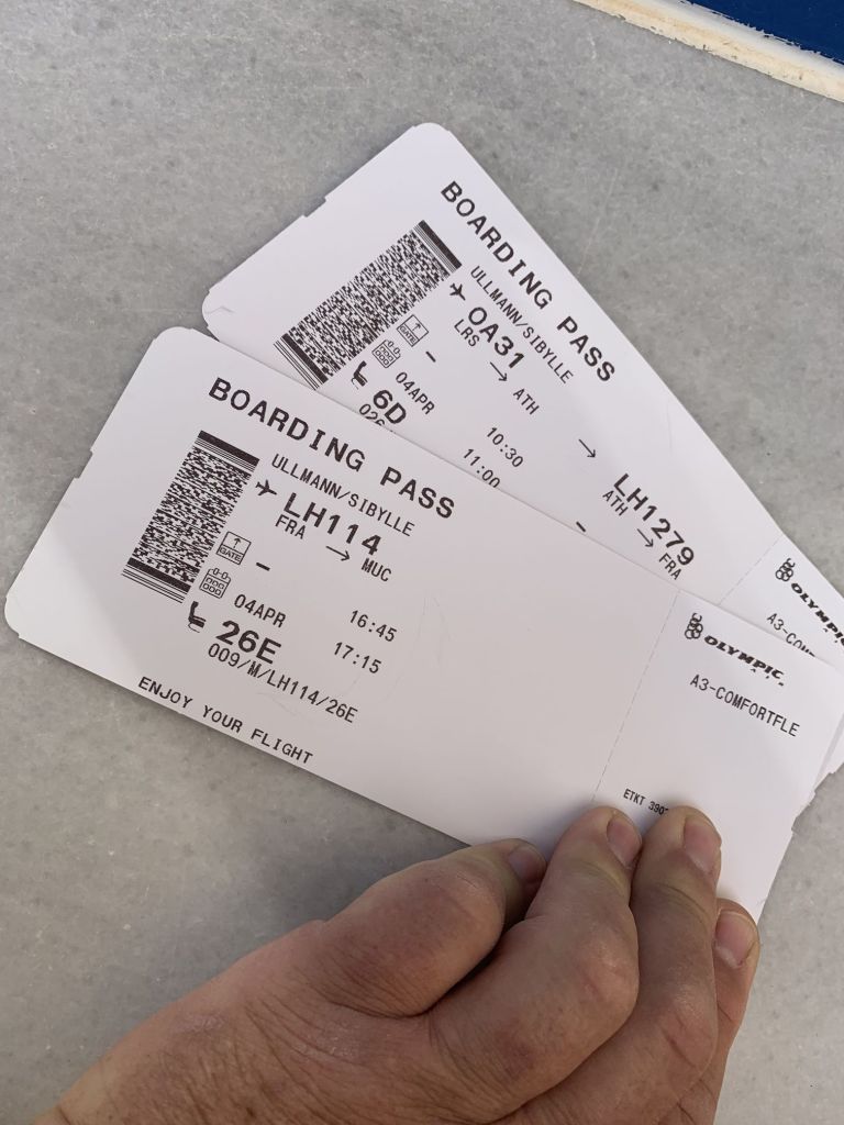 Am Abend erreicht mich die Nachricht, dass Sibylle gut in Deutschland angekommen ist, sie hatte Athen sehr zeitig erreicht und konnte den Flug nach Frankfurt auf einen früheren, etwas knappen, direkt nach München umbuchen – manchmal brauchst halt auch a bissl Glück!