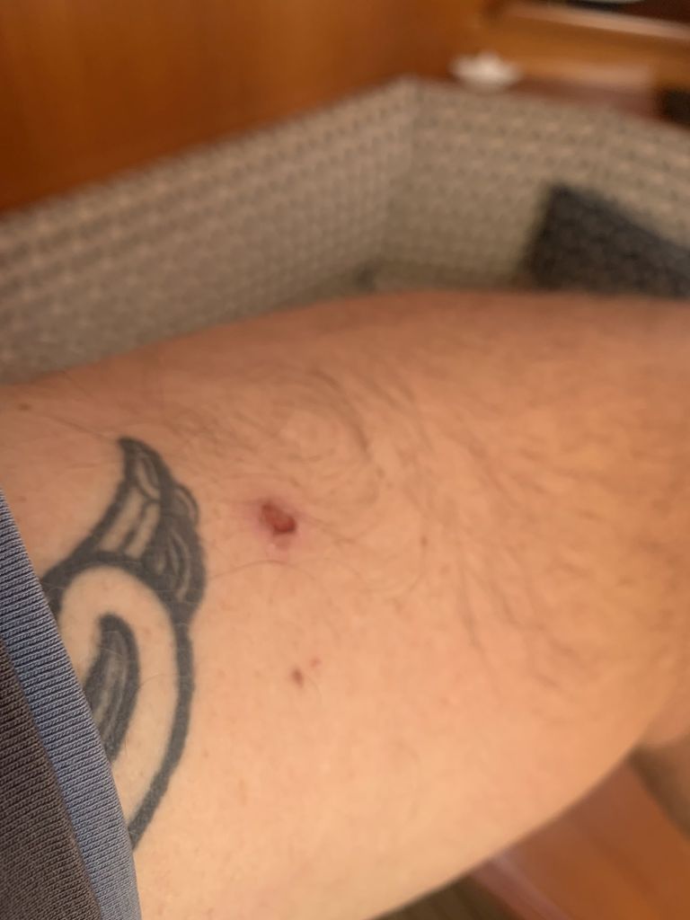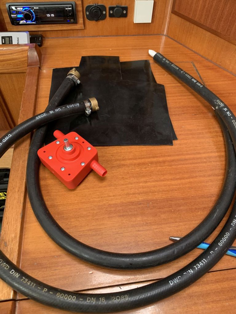 Dennoch gelingt es mir, den Schlauch an beiden Bohrstellen anzubohren – an dem Tag konnte ich mir echt die Eselsmütze aufsetzen! Gott sei Dank gingen die Löcher nicht ganz durch, so war die Reparatur mit SIKA und selbstvulkanisierendem Tape vertretbar.