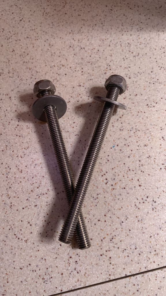 Das war nicht alles! Ich habe Standard-Schrauben in fast allen Längen, habe gut gemessen und doch waren meine 10cm Schrauben am Ende 5mm zu kurz. So musste ich noch Bolzen anfertigen und mehr oder minder aufwändig flexen.