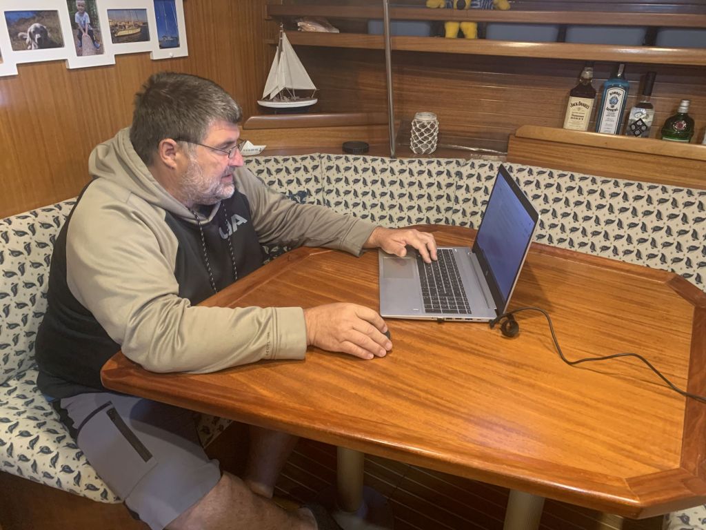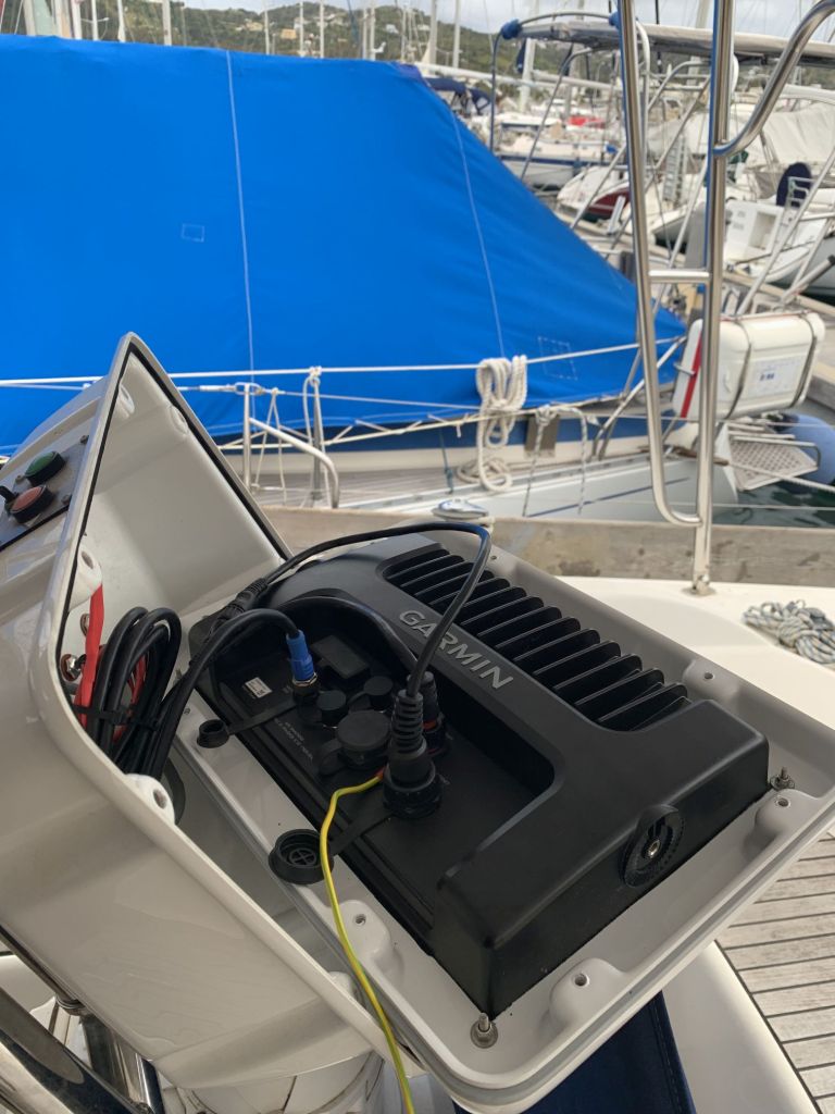 Danach begrüße ich Ray, den Niederländer der mehr ein Waliser ist. Er ist der Eigner des beaufsichtigten Katamarans und gestern angekommen. Ich beginne, den im Winter für ihn beschafften Plotter einzubauen.