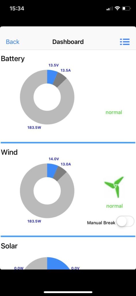 Mir kam zu Gute, dass es windig war und meine Hassliebe, mein Windgenerator, ziemlich lieferte. Dazu tagsüber der Solarstrom – passt alles, immer noch ohne sich sehr zu mühen.