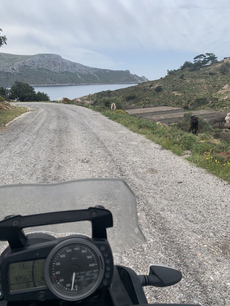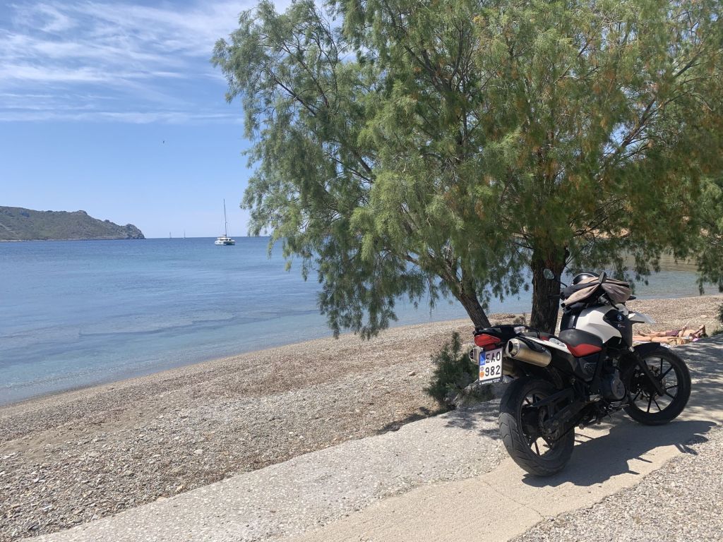 Ich fahre mit dem Motorrad zu seiner Ankerbucht…