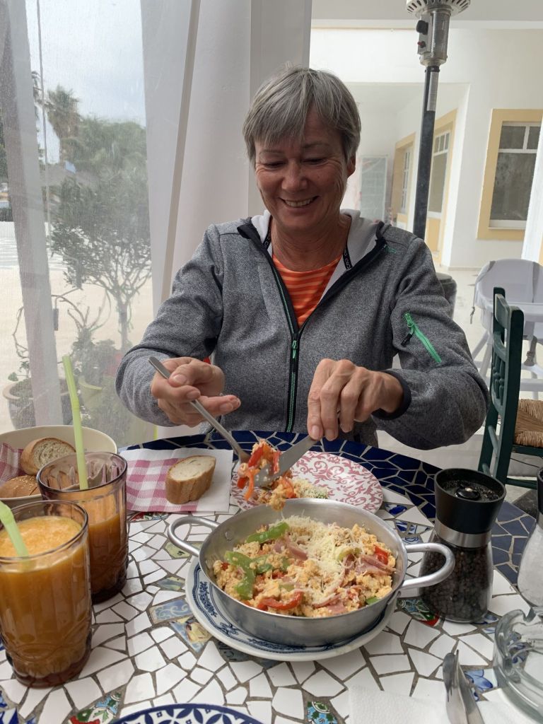 Wir mampfen unsere Teller auf, freuen uns über den schönen Beginn dieses Tages, der verspricht ein guter zu werden. Etwas später kommt unsere Fähre, just in time!