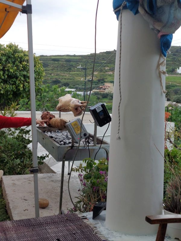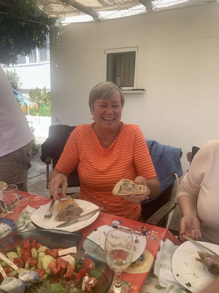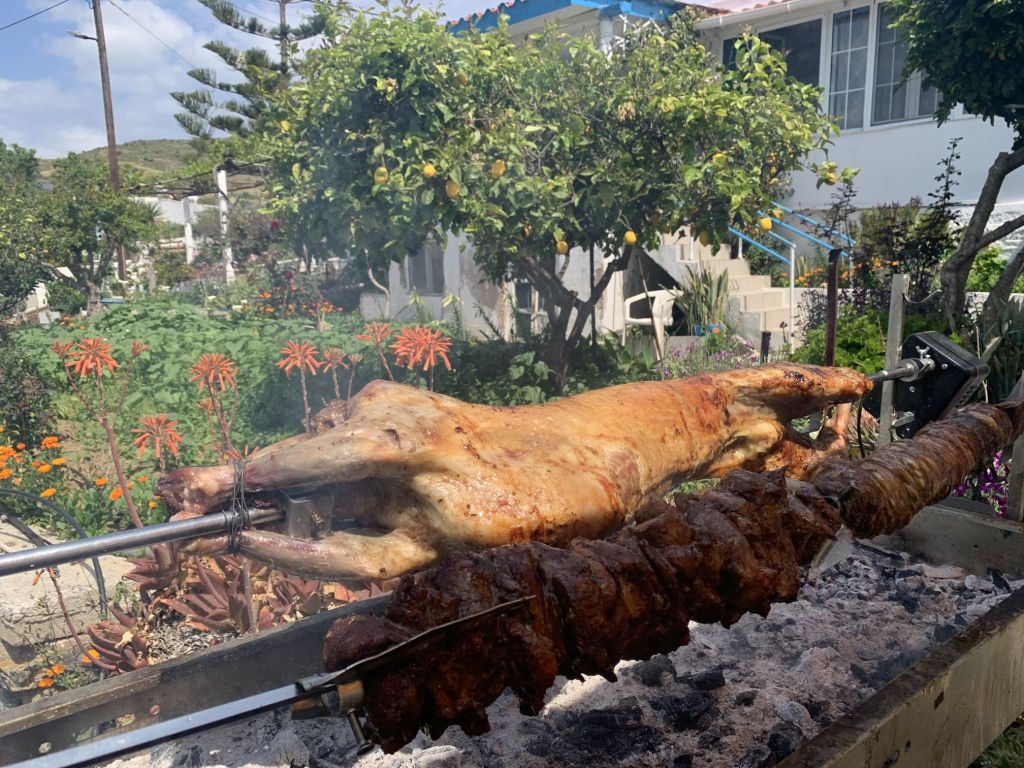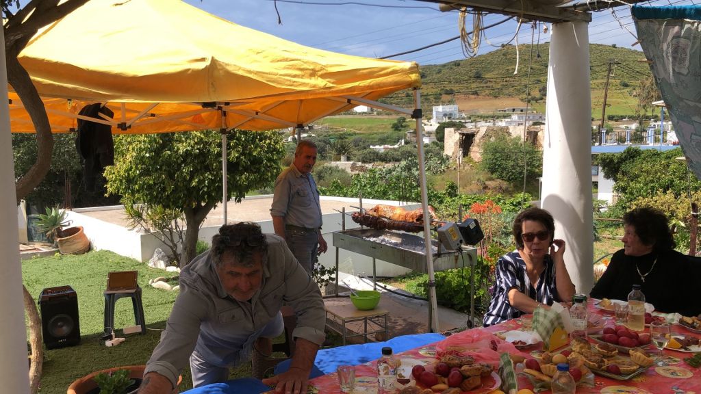 Nachbarn an unserem Steg, auch aus der Schweiz stammend, waren auch recht froh ihr Schiff den ganzen Winter über „bewacht“ zu wissen. Wir waren daher heute ins „Pirofani“ am Strand von Panteli geladen, eine Einladung die wir gerne annahmen.