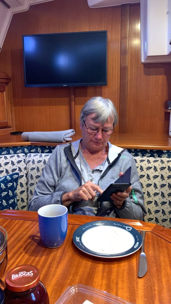 Dort checkte ich nochmals meine Batterien und meinen Stromhaushalt, denn ich bin seit Sibylles Abreise „off grid“, ich will sehen, wie lange ich es alleine ohne Landstrom oder Nachtanken von Wasser aushalte. Ohne zu sparen, aber mit einem anderen Nutzerverhalten als meine Gattin.