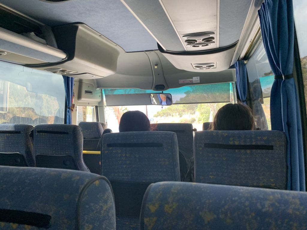 Ich drehe also mein neues Schild auf „CLOSED“, wir packen unser Tagesgepäck und machen uns auf den Weg. Der Plan ist, diesmal auf öffentliche Verkehrsmittel zu setzen – wir gehen also zur Bushaltestelle und warten auf den Inselbus.