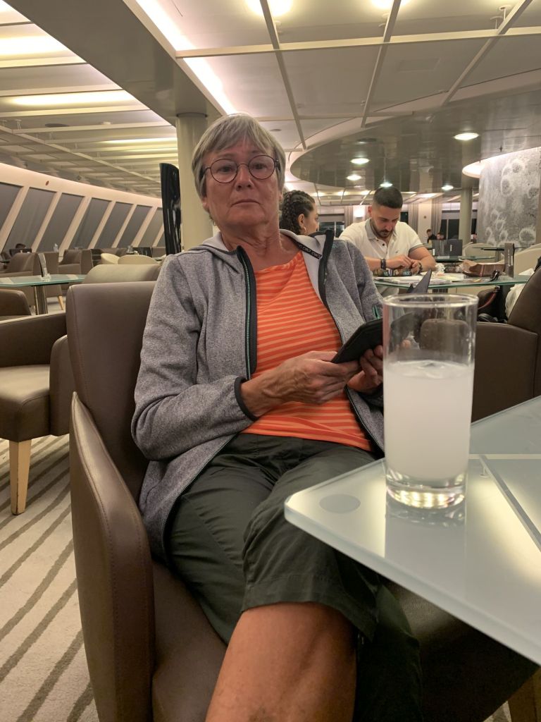 Es bleibt nicht beim Cola! Wir Drei trinken ein Bier und gönnen uns ein Fläschchen Ouzo. Wir haben viel Spaß, alleine schon deshalb, weil Johannes ein liebenswürdiger, verplanter Typ ist – die Tränen kullern uns über die Wangen, als wir ihm die Facebookgruppe „Einsame Seglerinnen über 55 suchen Skipper mit Schiff“ empfehlen.