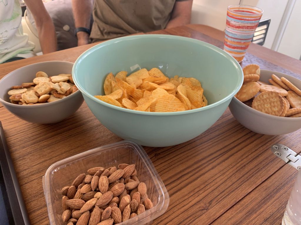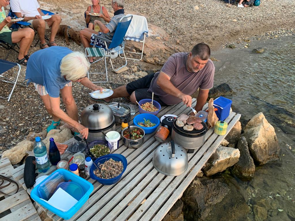 Neben uns und der Crew der JASPER, waren auch Hans-Peter von der LIBERTÉ und die Crews der HARMONY und der LE CLAPOTIS informiert – die Regel war, jeder bringt Grillgut und Getränke welche er bevorzugt PLUS einen Salat für die Allgemeinheit. Das klappte vorzüglich!