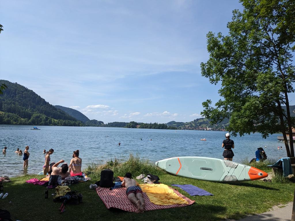 Den Rest des Tages verbringen wir im Garten des – Nomen est Omen – „Haus Seegarten“. Wir gehen schwimmen, treffen alte Freunde aus der Heimat und laben uns an Cappuccino und Steckerleis.