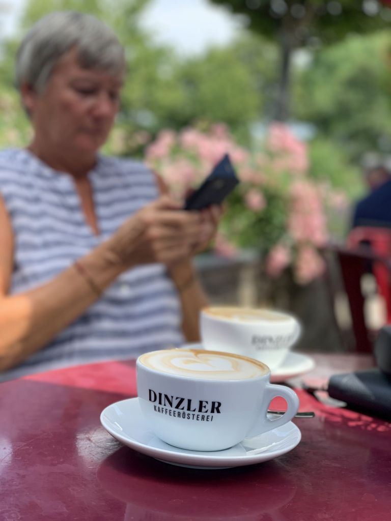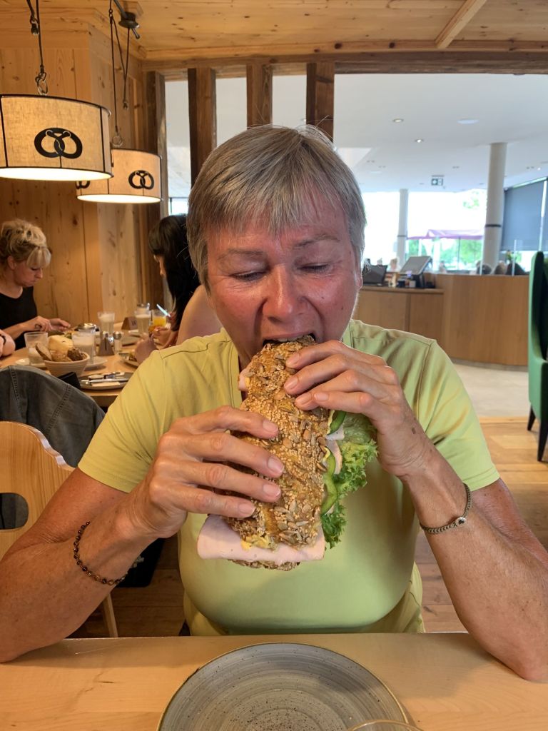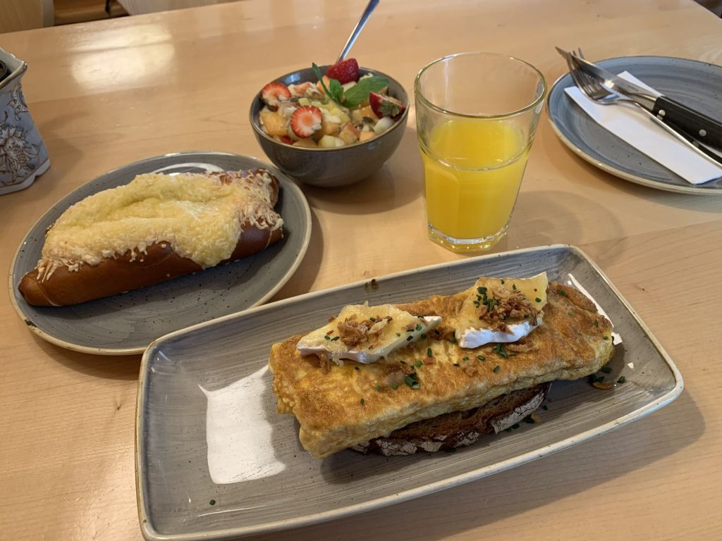 Wir haben herrlich geschlafen! Die Betten im „Haus Seegarten“ waren bequem, es hatte die ideale Schlaftemperatur für Sibylle UND mich. Dennoch mussten wir früh raus. Sibylle hatte einen Termin, ich wollte während ich auf sie wartete ein leckeres Frühstück einnehmen.
