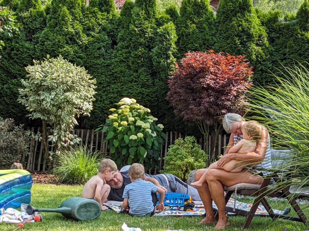 Zeit sich abzulenken. Meine Tochter schneit mit einer der Enkeltöchter herein. Auch hier natürlich ein großes HALLO, wir tauschen die ersten wichtigen Infos aus, gehen baden und genießen die Zeit. Ihr Mann würde mit der zweiten Enkelin morgen nachkommen, eine Kindergartenfeier hat hier die gemeinsame Anreise verhindert.
