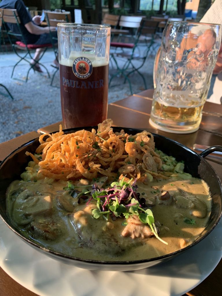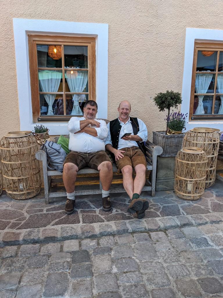 Wunderbar! Wir mampfen die bayrischen Schmankerl in uns rein, als hätten wir tagelang nichts zu essen bekommen. Die Gier nach dem „anderen Essen“ war einfach groß. Wir tranken zwei Bier, hatten viel zu „ratschen“ und der Abend verging rasch. Mit vollen Wänsten verabschiedeten wir uns uns und zwängten uns in unseren roten Flitzer – bis morgen, wir sehen uns…