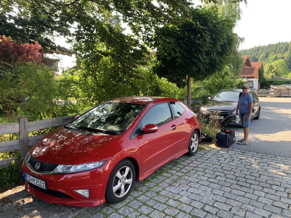 Die Schwiegertochter gibt uns unsere Pakete und die Post, wir packen alles in unser Auto, welches hier auf uns wartet. Durch das Geschenk von Franziska und ihrem Mikey sind wir wieder im Besitz eines kleinen Wagens, welcher uns die nötige Mobilität sichert.