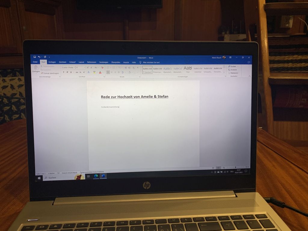 Offen gesagt, ich hatte wenig Lust, hatte auch den Hauch eines Versuches gestartet, mich von dieser Last zu befreien – erfolglos! Der Bub möchte, dass sein Vater ein paar Worte zu seiner Hochzeitsfeier sagt, wie könnte ich das verwehren?
