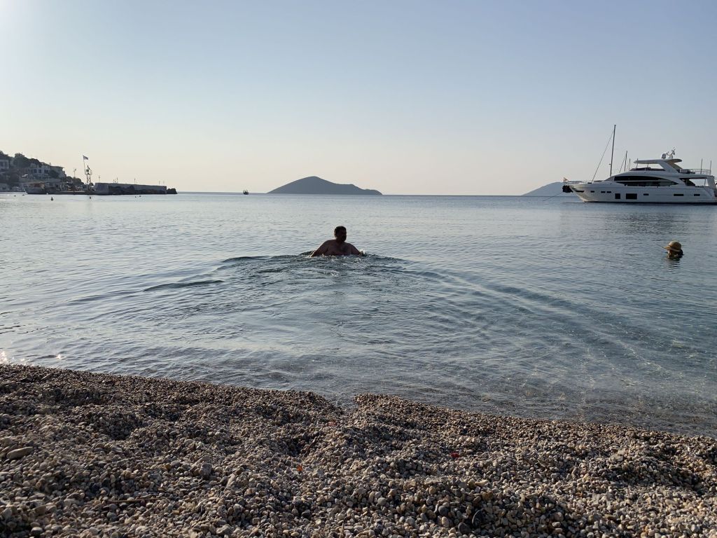Ich genieße es zu schwimmen, werde wach, trinke einen Kaffee. Das klappt zu dieser Zeit noch gut. Später im Monat werde ich diesen liebgewonnenen Brauch wegen der Wärme und der vielen Urlauber aufgeben.