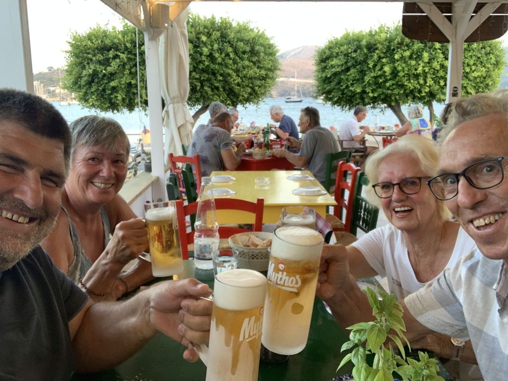 Zum Absacker sitzen wir mit Freunden zusammen, sofern sich dies spontan ergibt. Wenn nicht, trinken wir einen Ouzo oder ein kaltes Bier an Bord und sprechen über die momentane Situation und die neuen Erkenntnisse.