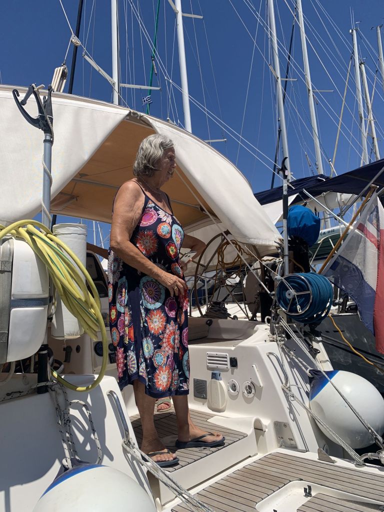Wir versuchen die Schlafmodalitäten zu optimieren. Der Ventilator läuft die ganze Nacht! Es kommen feuchte Tücher auf der Brust zum Einsatz, die Decken weichen den einfachen Laken. Wir sprechen über die Anschaffung einer Klimaanlage, zu meiner Überraschung kneift Sibylle aber bei diesem Punkt. Ich schlafe im weiteren Verlauf des Monats im Cockpit, manchmal hilft ein Ouzo mehr, ab und an kommt die Brause nachts zum Einsatz. Es ist Hochsommer in Griechenland!