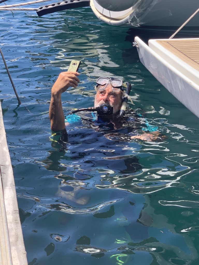 Der Tag weckt mich. Es ist hell, die Uhr sagt es ist 06.30 Uhr, die Marina ist noch nicht erwacht. Die perfekte Stunde um an der Kaimauer mit einem Kopfsprung ins Meer zu springen und so den Schlaf aus dem Körper zu treiben. Dnach der obligatorische Kaffee – dann ruft die Pflicht!