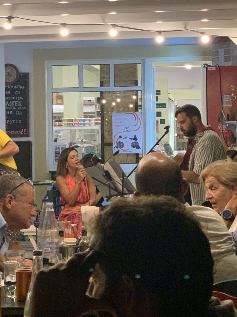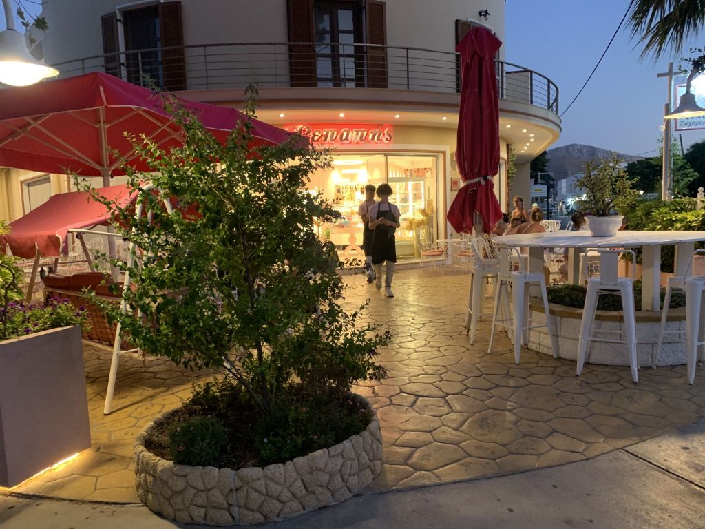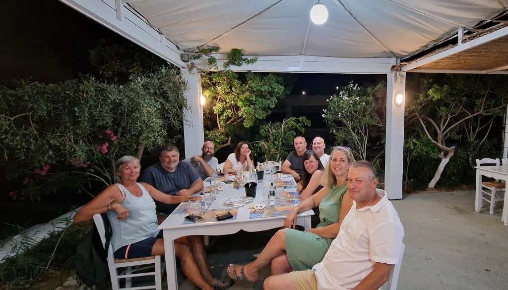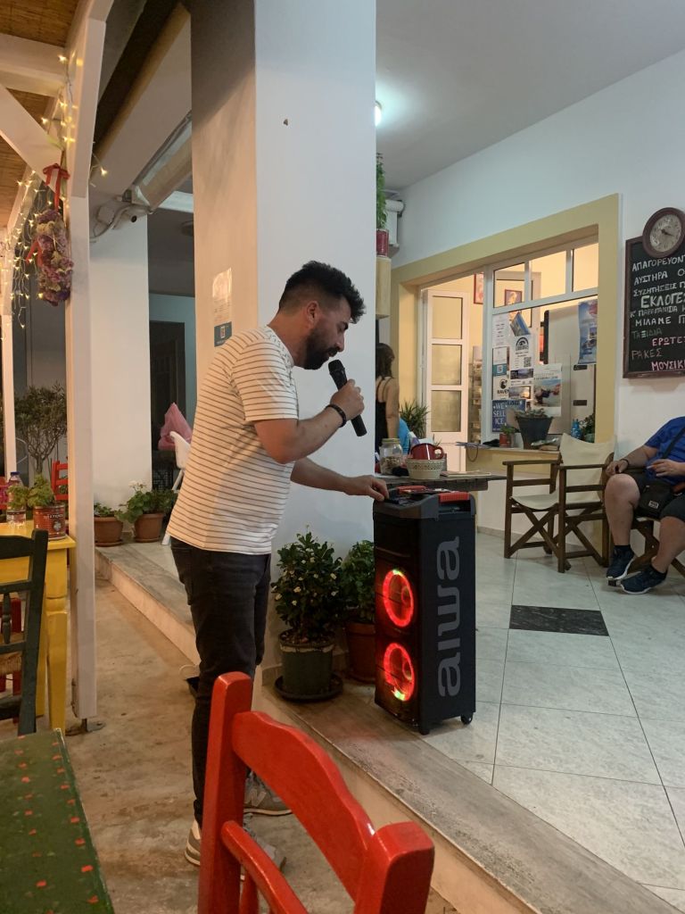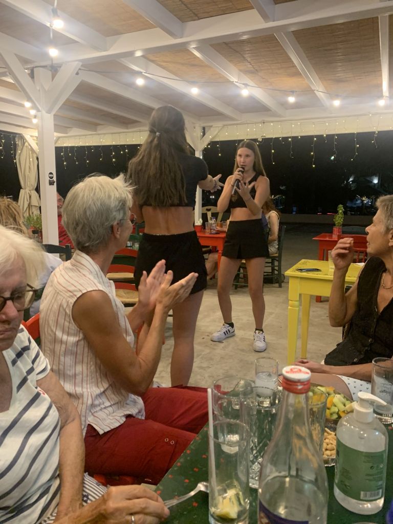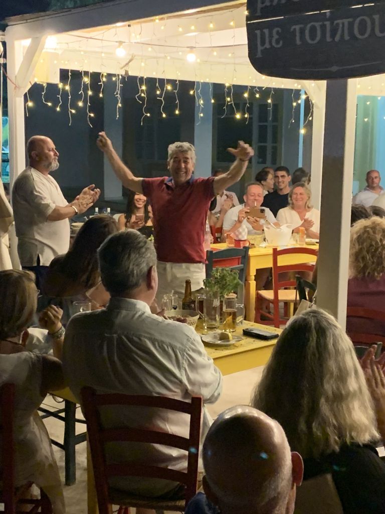 Der hereinbrechende Abend kann unsere Stimmung wieder aufhellen! Nach einem Dinner in großer Runde im „SouVLakki“ gehen wir ein Eis essen und erfahren dort von Sibylle und Angelika, dass bei Marietta der Bär steppt. Es wäre Karaoke Abend und die Gäste toben…