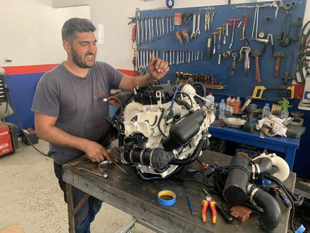 Am Abend fahre ich zu Giorgos, es gibt News vom Tender der ELOWYN – der Motor ist zerlegt, es muss nun entschieden werden wie es weitergehen soll.