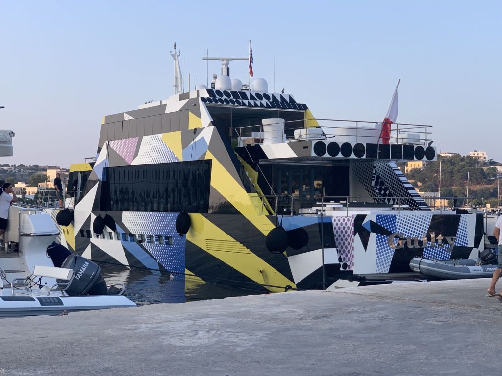 …ich nehme mir die Zeit, den Schlenker dorthin zu fahren. Ich will ein Foto von diesem Quasimodo der Meere – ich habe noch nie so ein hässliches Schiff gesehen. Ich kann mir ein Kopfschütteln nicht verkneifen – auffallen um jeden Preis, so gelingt´s!