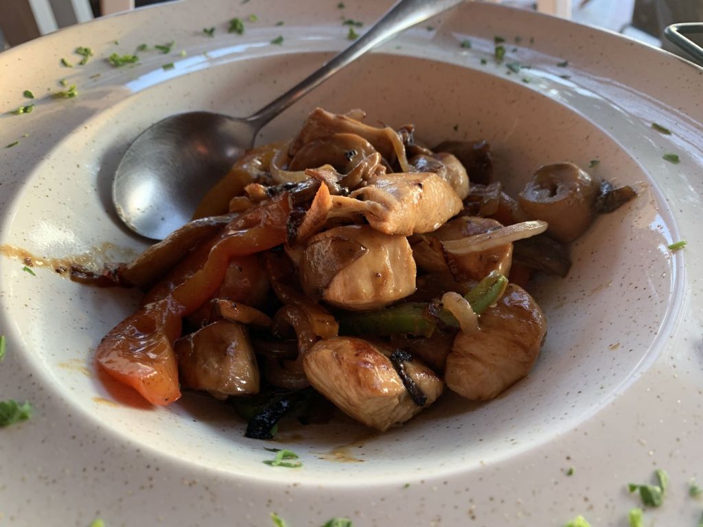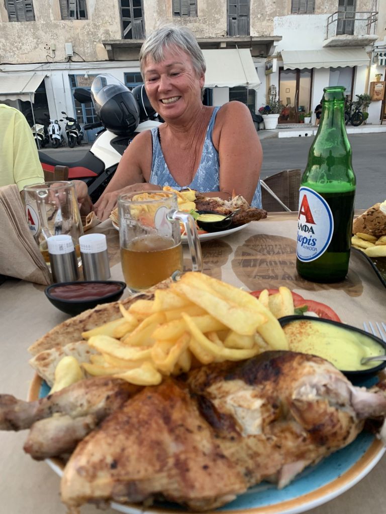 Diesmal fällt die Wahl aber nicht auf die klassischen Gerichte wie Giros oder Souvlaki, diesmal gönnen wir uns jeder ein halbes Hähnchen als Platte – eine gute Portion!