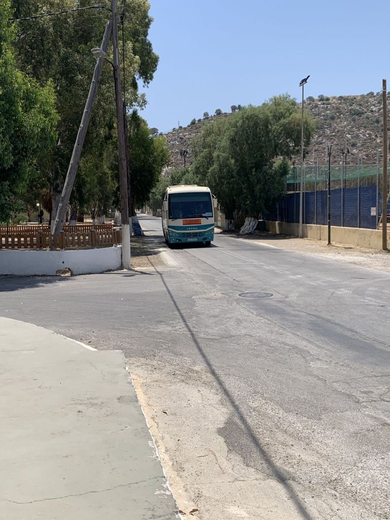 Nach etwa 45 Minuten Fahrt im voll besetzten Linienbus, steigen wir im flughafennahen Zielort Mastichari aus. Der Ort ist ein Badeort an der Nordküste von Kos, nicht unbedingt mein Fall, aber für einen Kurzbesuch ganz ok.