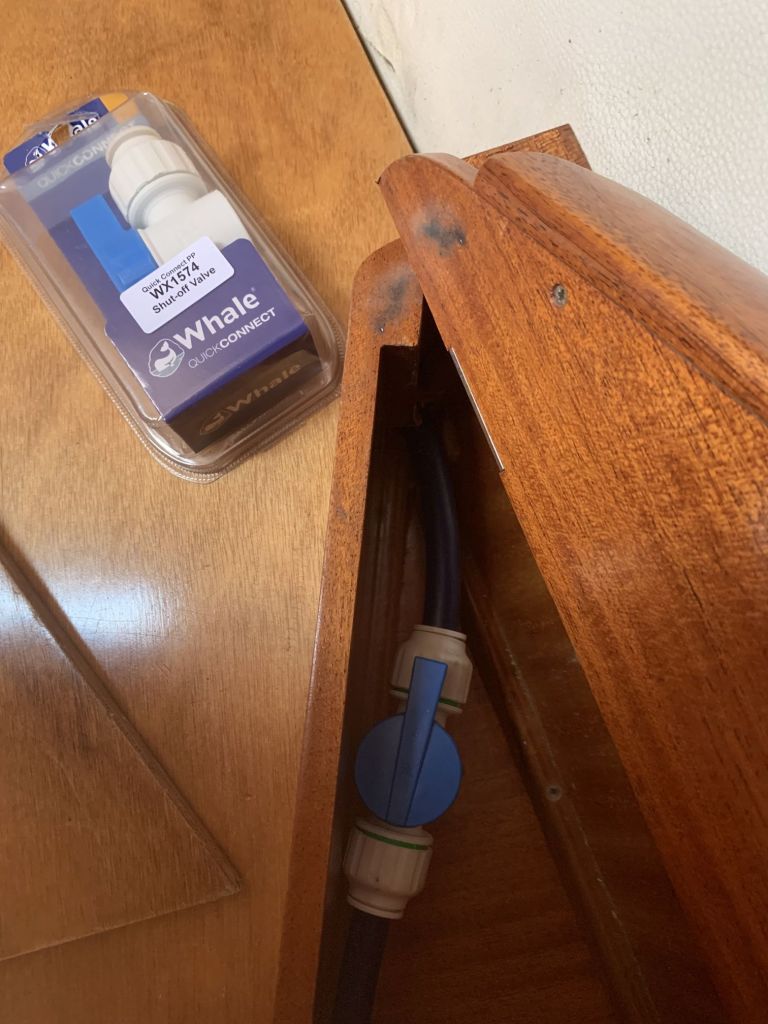 Ich schmeiße also den Billighahn raus und beschließe, den qualitativ hochwertigen Ersatz an besser zugänglicher Stelle zu montieren. Das birgt das Risiko, dass der Absperrhahn nicht unmittelbar am Tankausgang ist, die kurze Whale Leitung somit eine theoretische Fehlerquelle darstellt – aber ich muss nicht mehr Matratze und Lattenroste abbauen um den Tank abzusperren.