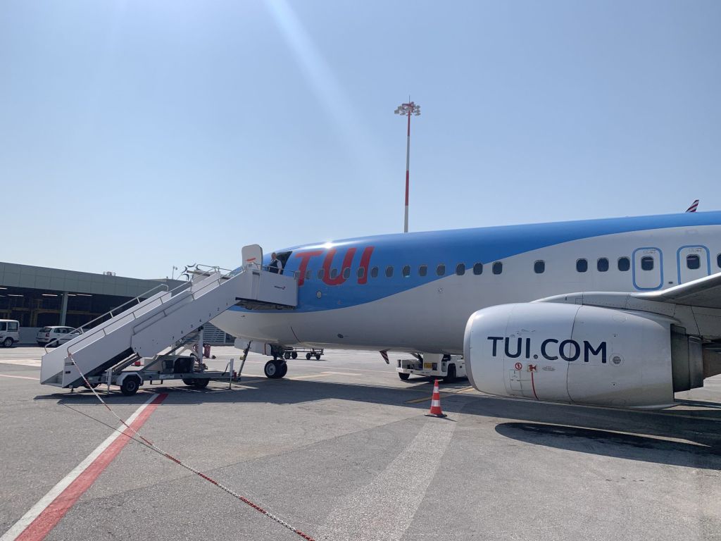 Am Flughafen trauen wir unseren Augen kaum. Lange Schlangen! Wir stehen an, geben das Gepäck auf und nutzen die restliche Zeit für ein kleines Frühstück – dann geht alles recht rasch.