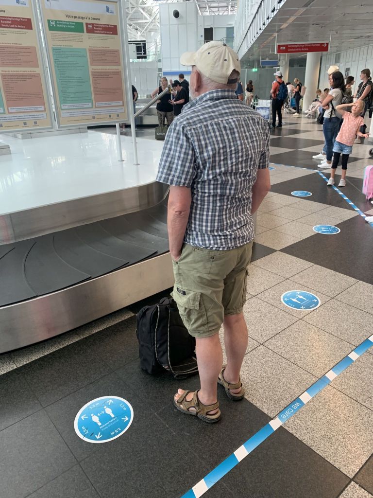 Aber – habt ihr auch schon mal an einem Gepäckband gestanden, an dem ALLE ganz vorne stehen wollten? Habt ihr die Szenen beoabachtet, wenn Menschen deren Gepäck tatsächlich kommt, sich den Weg zum Band bahnen müssen, wie sie sich plagen ihre Last durch die Menschenmassen hinter ihnen zu pressen? Wer das kennt weiß, dass der Streifen auch NACH Covid sinnvoll ist, es braucht halt a bissl Hirn dafür.