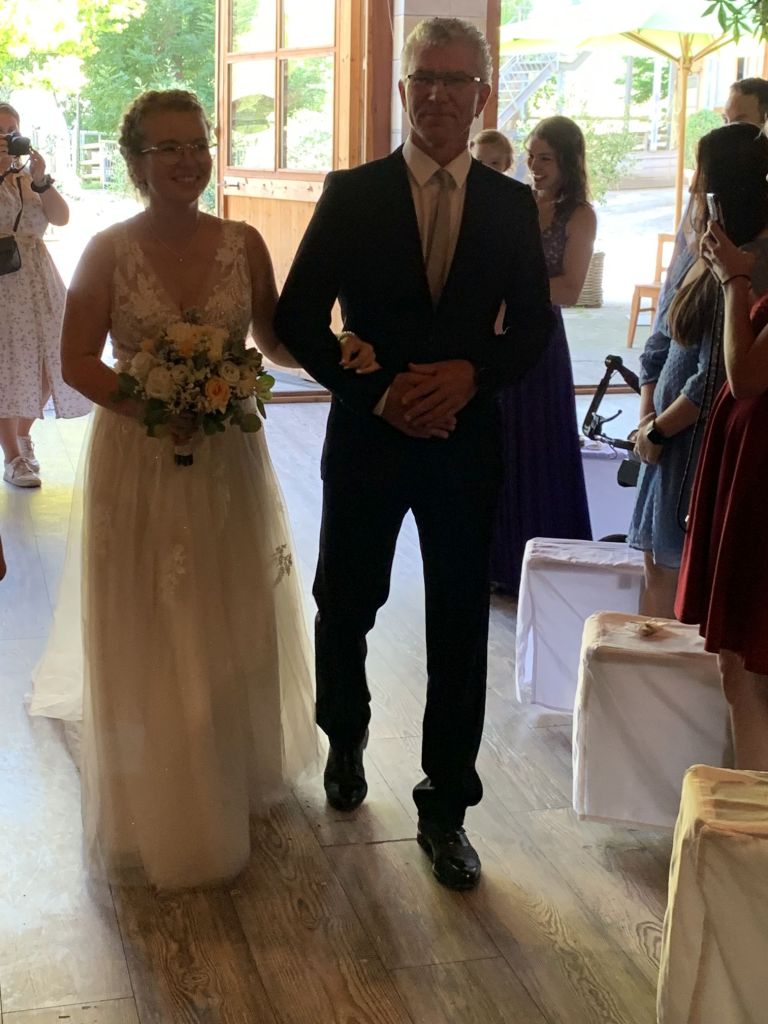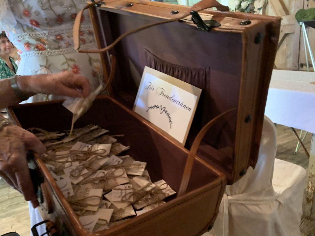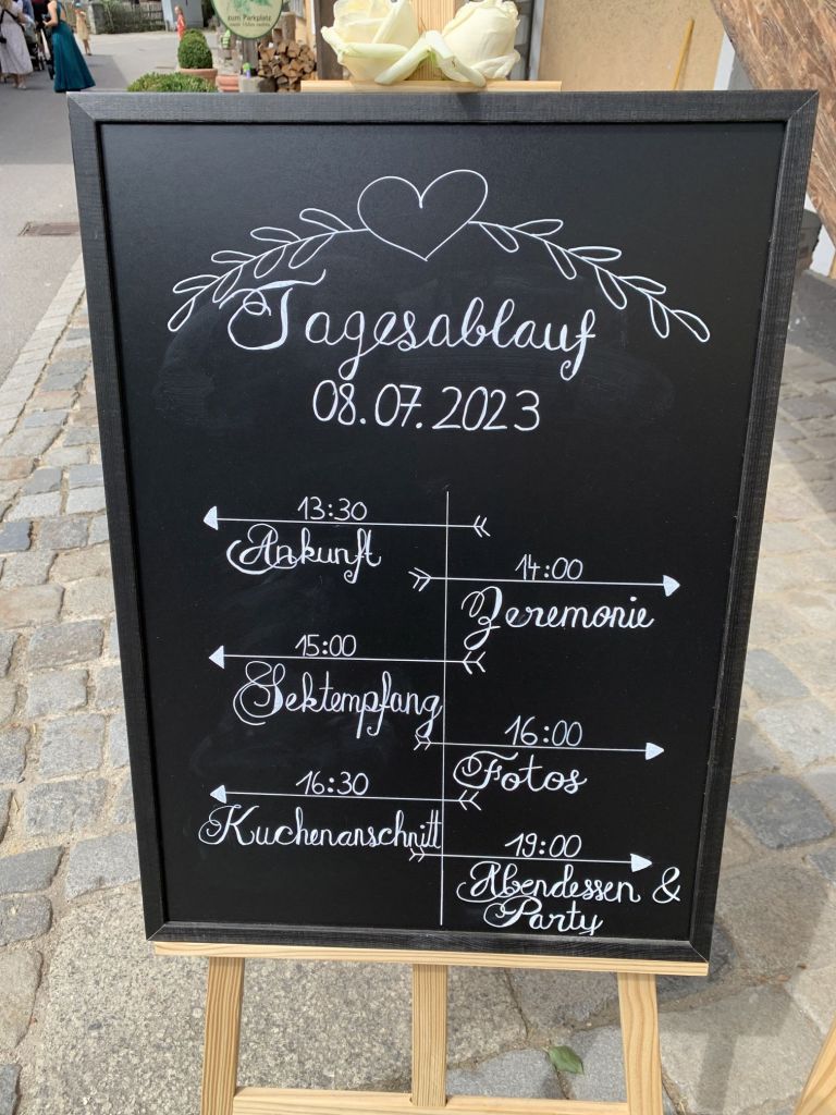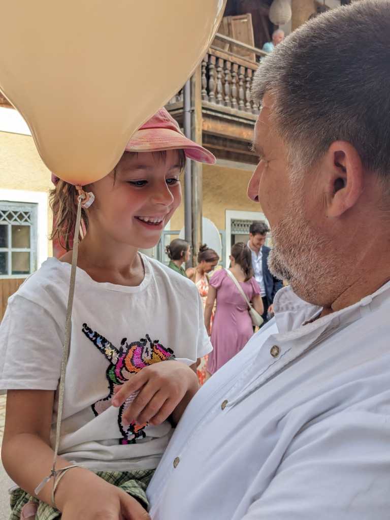 Samstag der 08.07.2023 – der Tag der Hochzeitsfeier war gekommen. Die Kleider, die dem Volksmund nach „Leute machen“, liegen bereit, wir frühstücken leicht. Es ist noch Zeit übrig, meine Tochter muss ein paar Dinge kaufen. Wir fahren zusammen in den Ort und während Nina einkauft, gehen Sibylle und ich mit Helena auf den Spielplatz – seltene Momente…