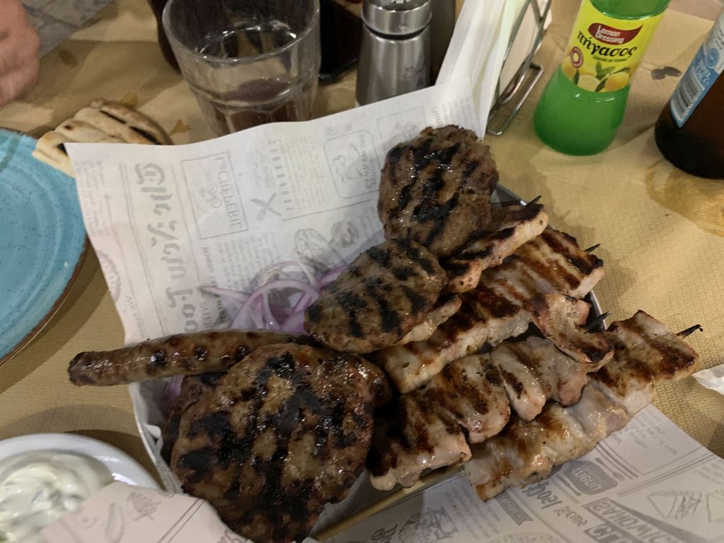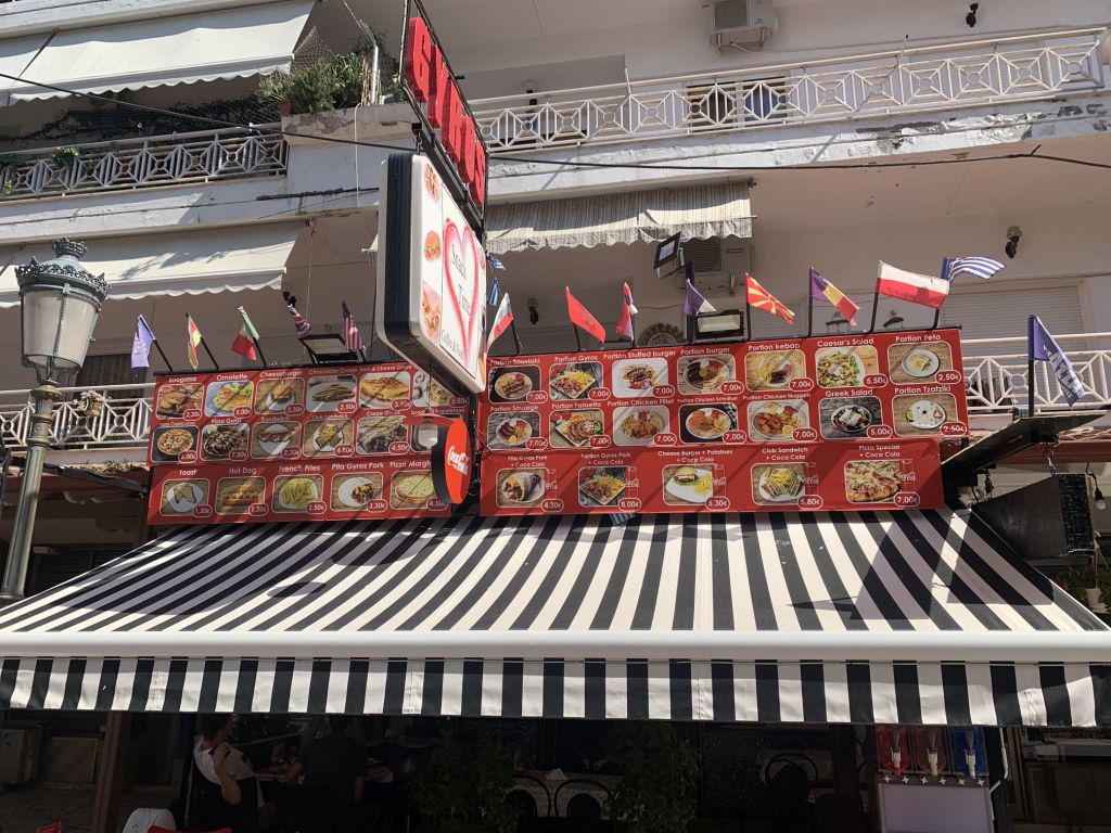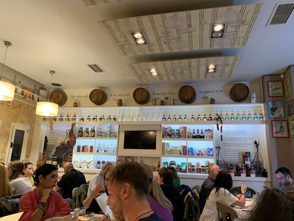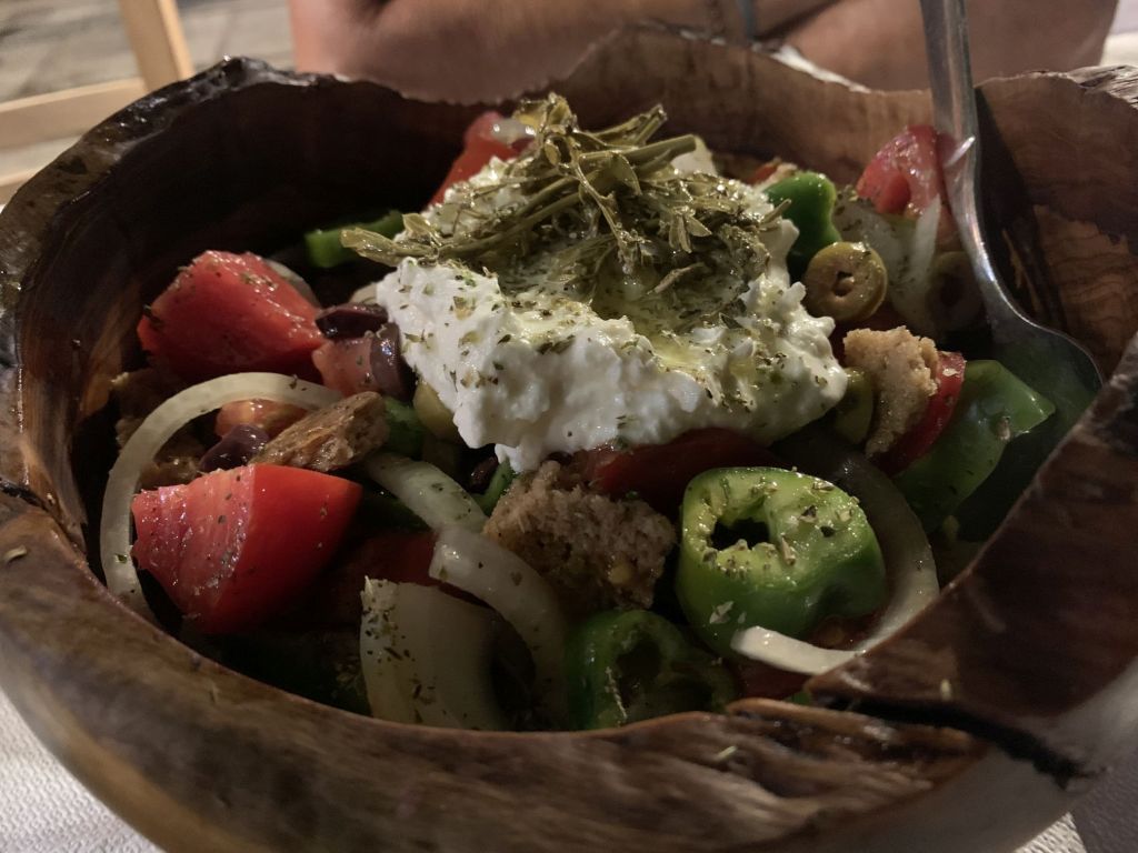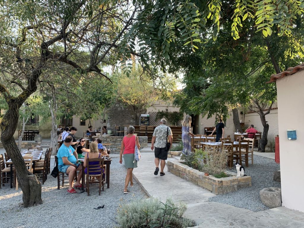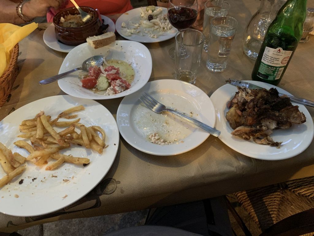 Wir gingen zum Dinner in die empfohlene „typische und urige Taverne in der man noch authentisch griechisch essen kann“ – genau was wir suchen!