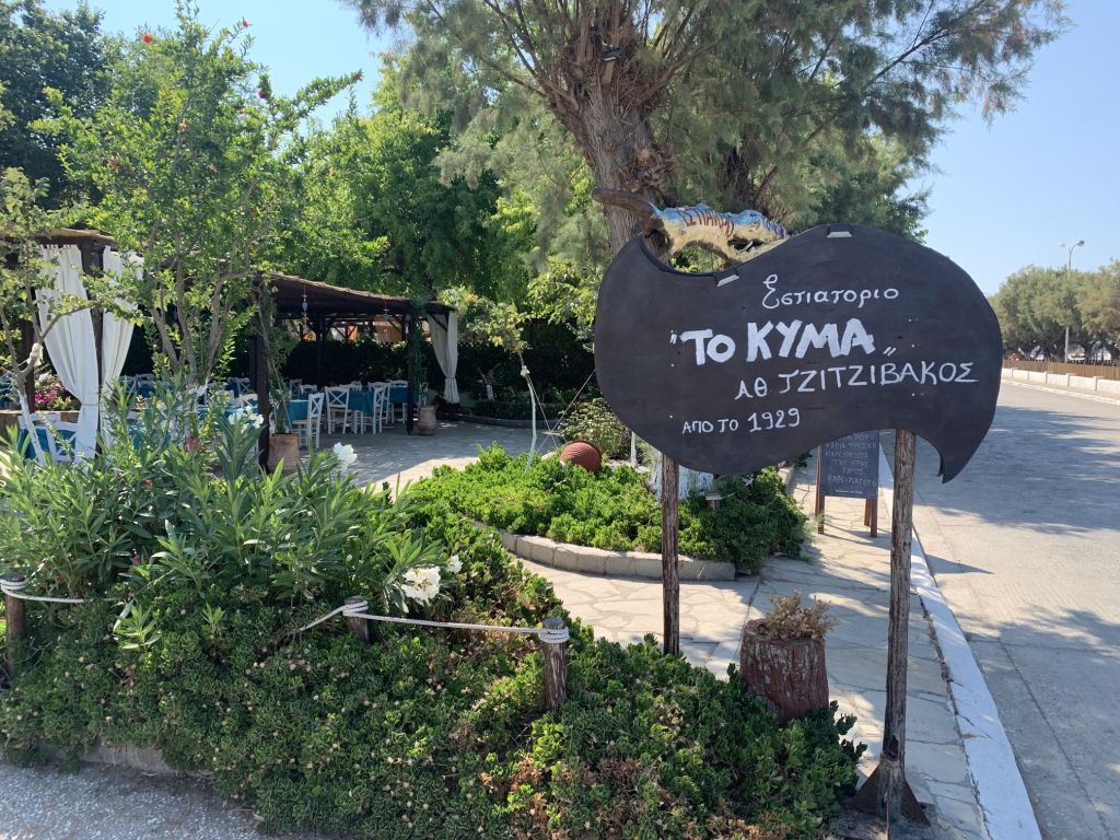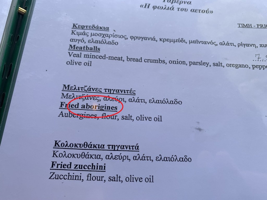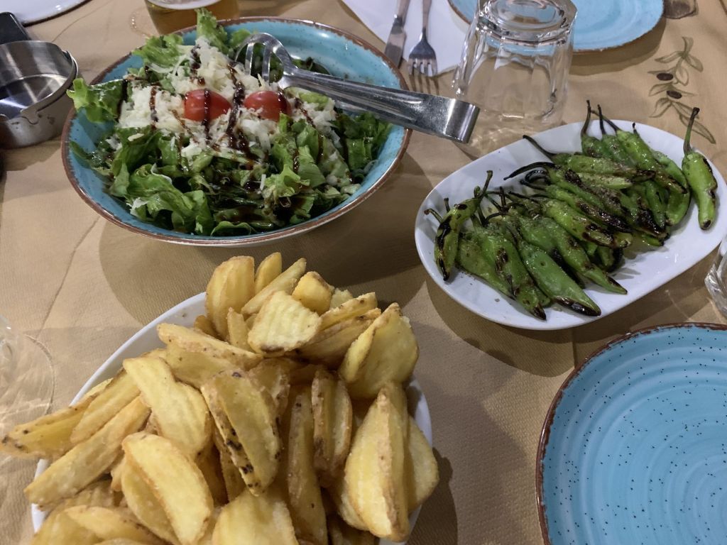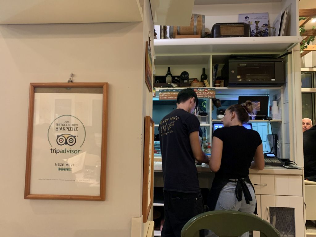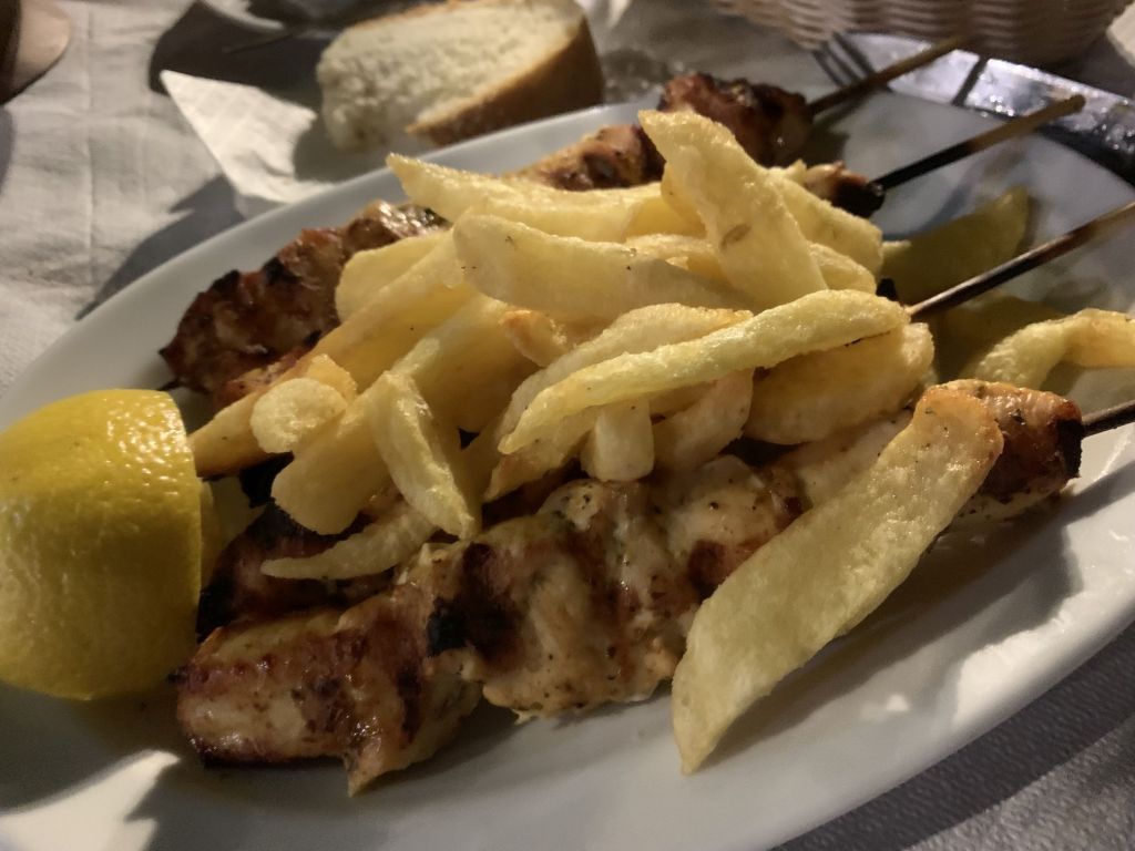 Wir gingen zum Dinner in die empfohlene „typische und urige Taverne in der man noch authentisch griechisch essen kann“ – genau was wir suchen!