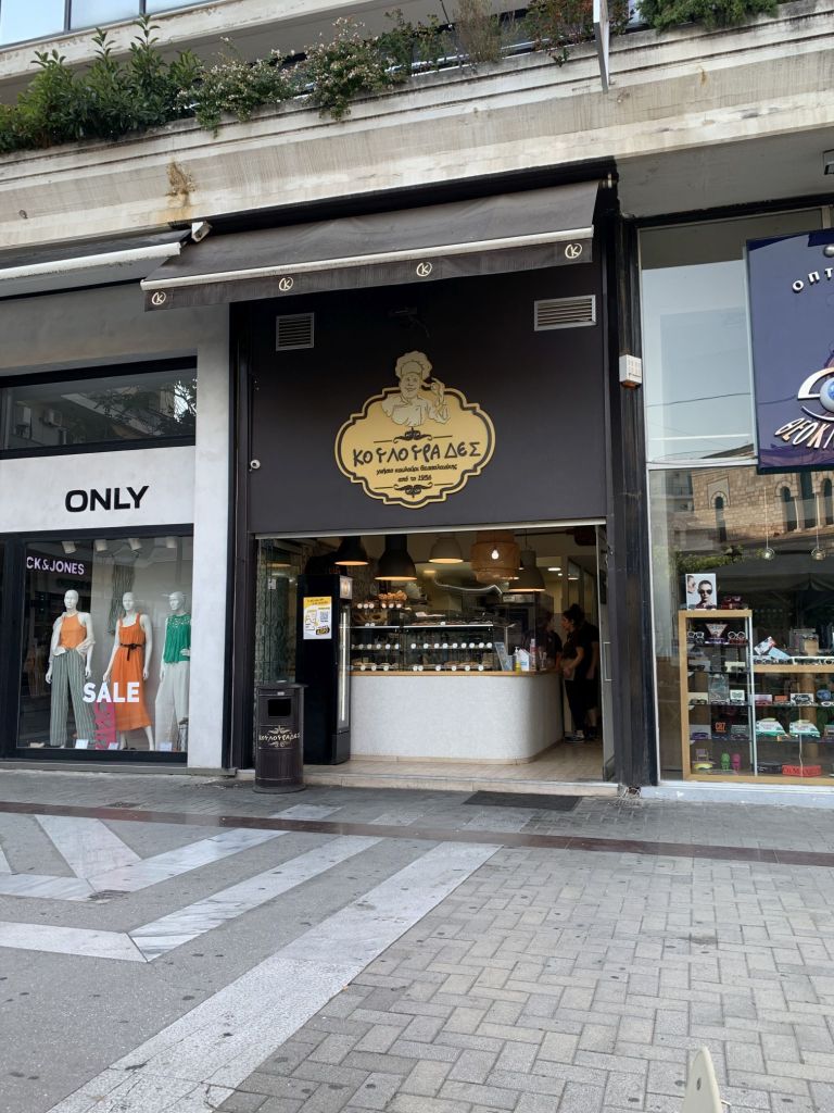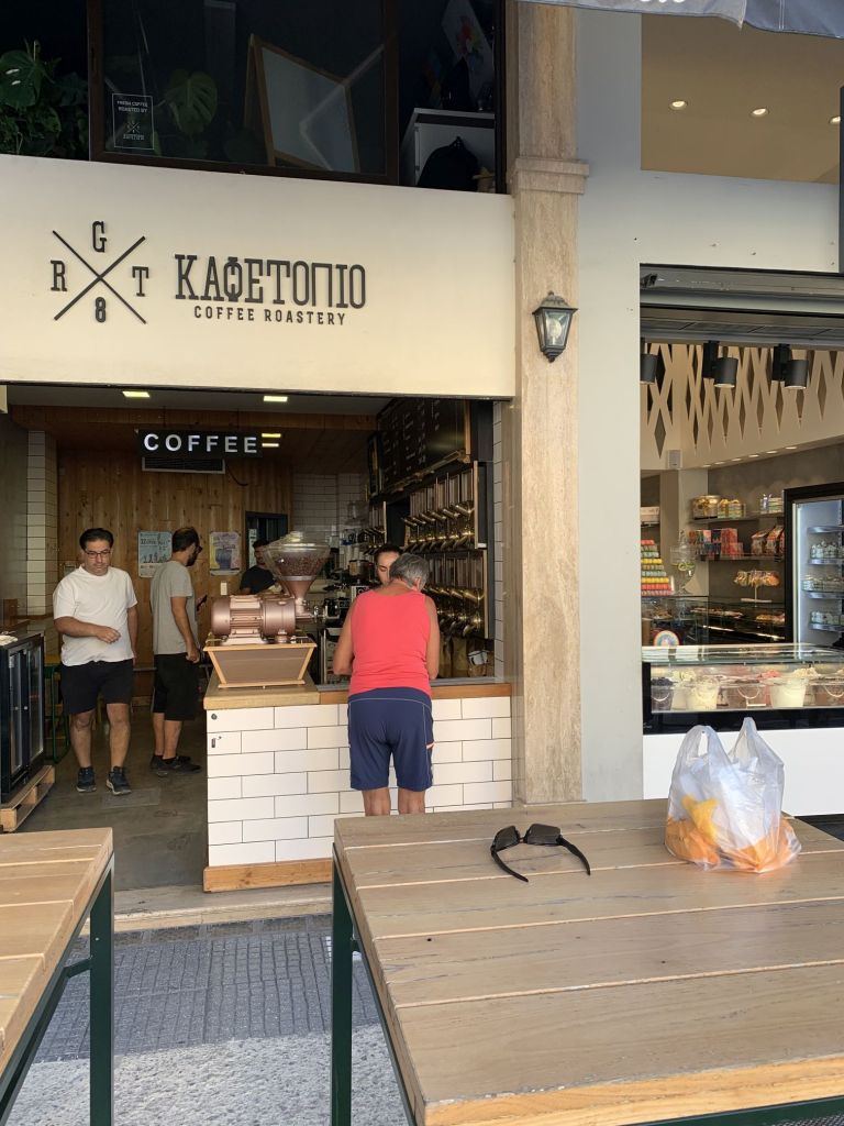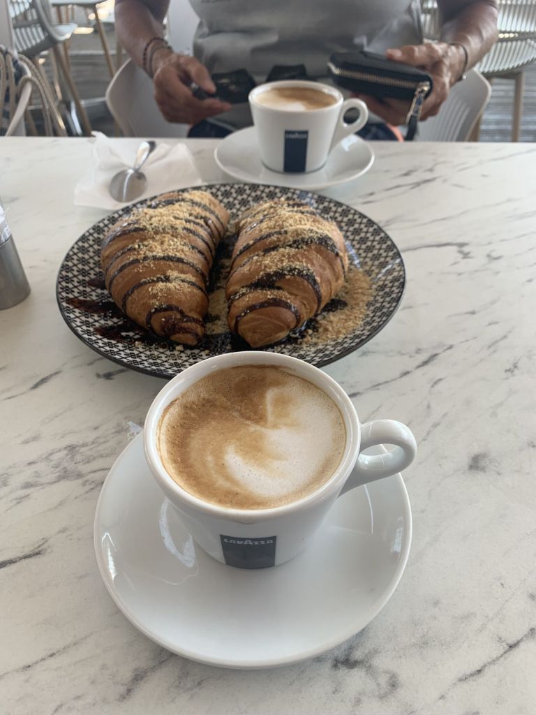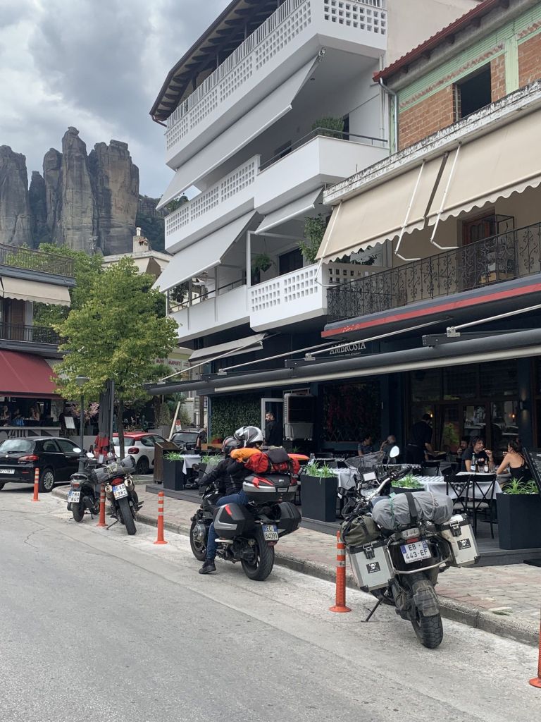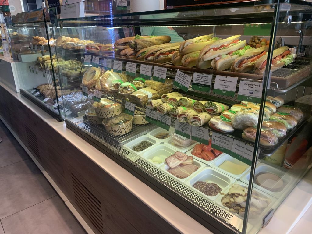 Am nächsten Morgen bepacken wir unsere treue Enduro ein letztes Mal. Wir fahren ins Zentrum von Chalkida und gehen bei der Bäckereikette „Gregories“ frühstücken. Normaler Weise würde ich kleinen Läden immer den Vorzug vor Ketten geben, aber „Gregories“ ist eine Hausnummer! Wir werden nicht enttäuscht und bekommen zum Abschluss die besten Sandwiches unserer Reise. Auch der Cappucchino ist ein Gedicht – Top Adresse!