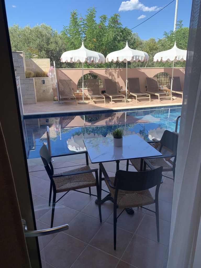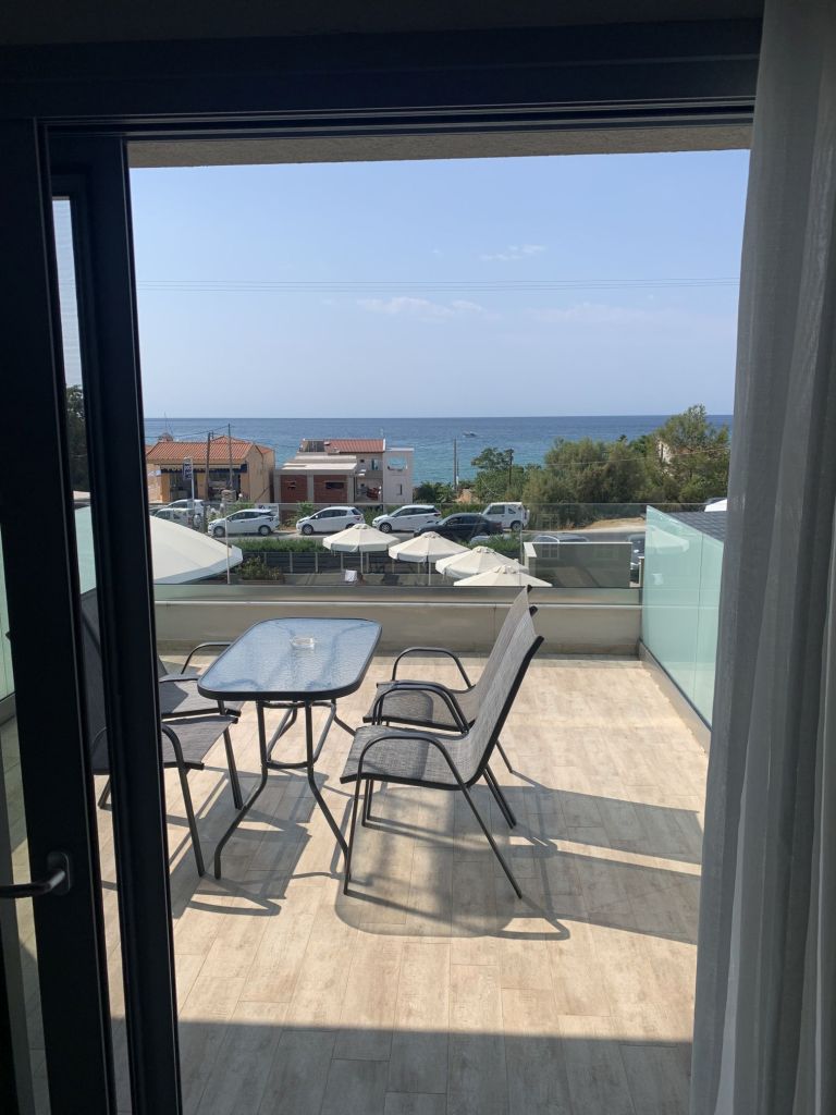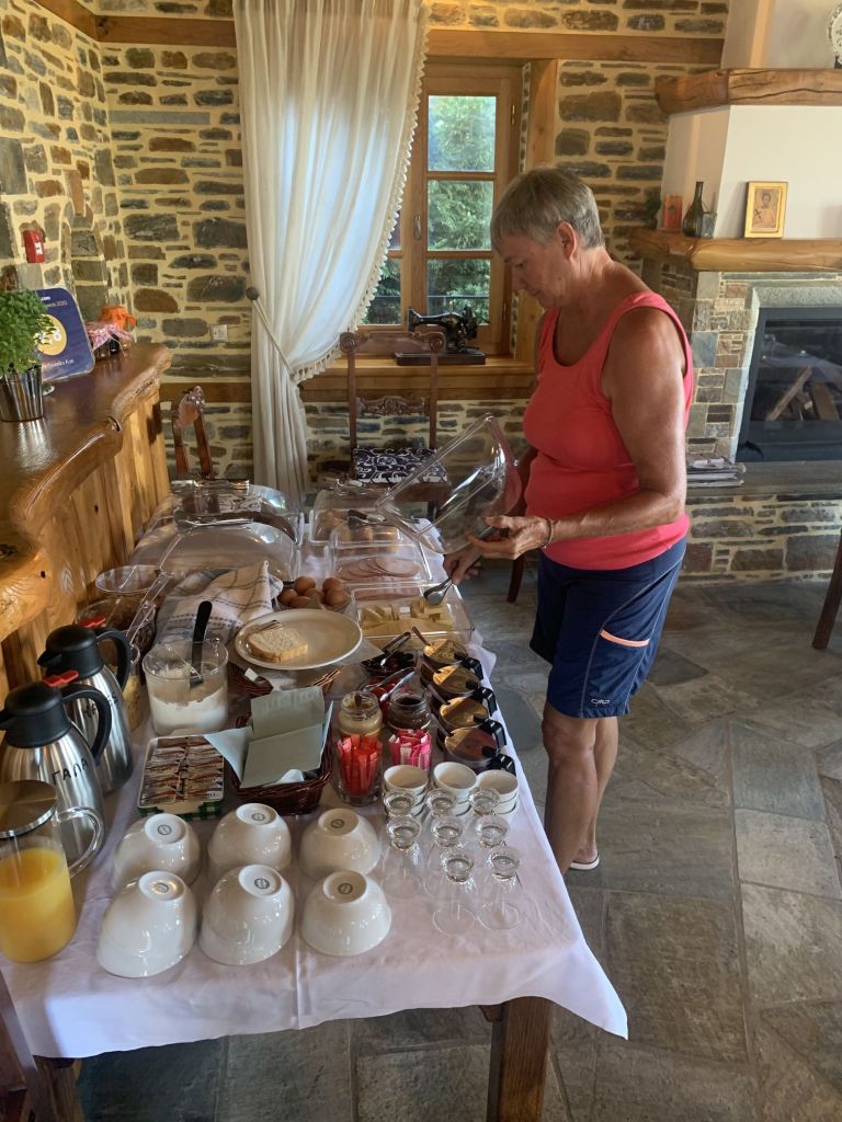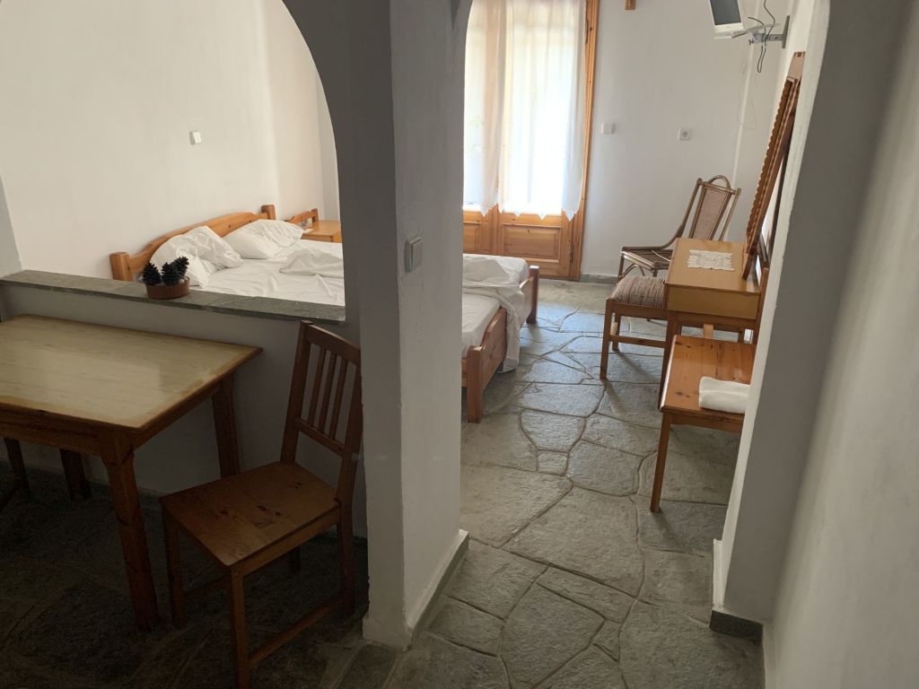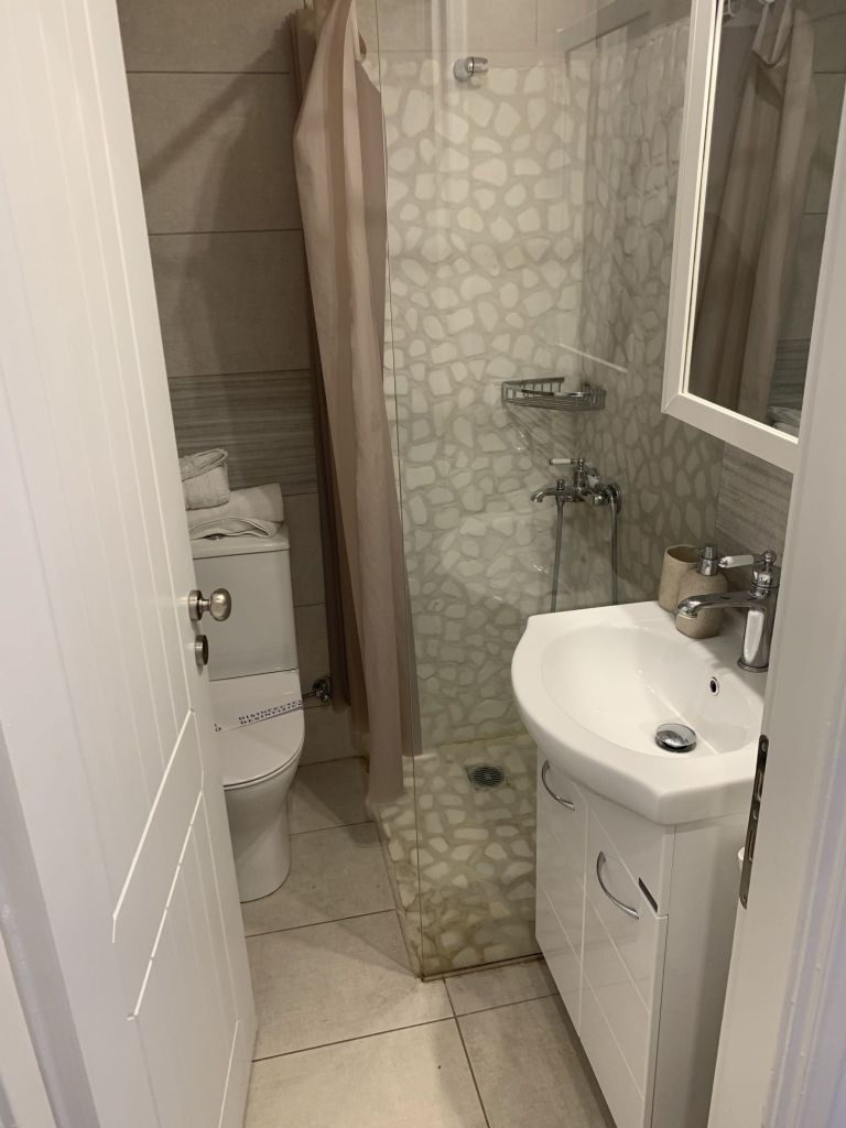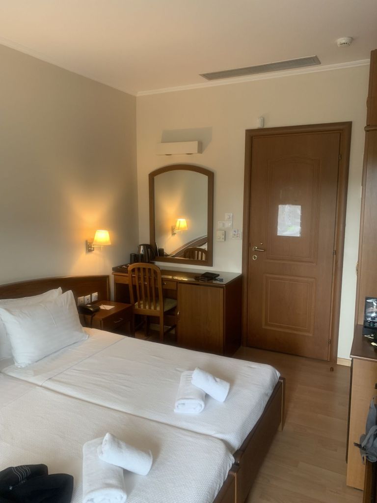 Eleni, die Gastgeberin, empfängt uns, sie heißt uns herzlich willkommen. Sie ist eine sehr nette und hilfsbereite Frau. Sie führt uns in unser Appartement, erklärt uns alles und weist auch auf unsere Nachbarn, „eine sehr nette Familie aus Moldawien“, hin.