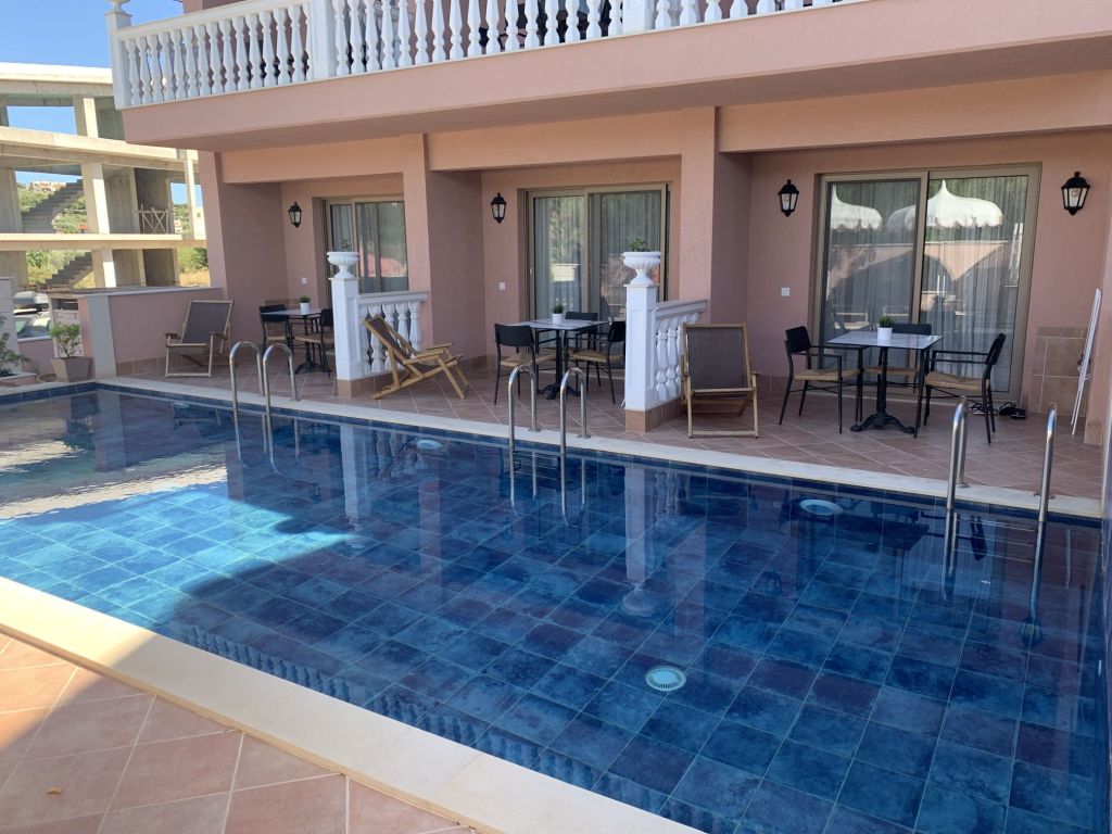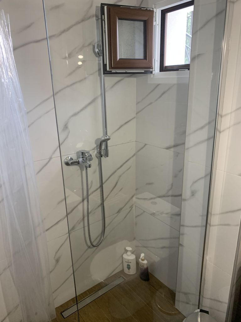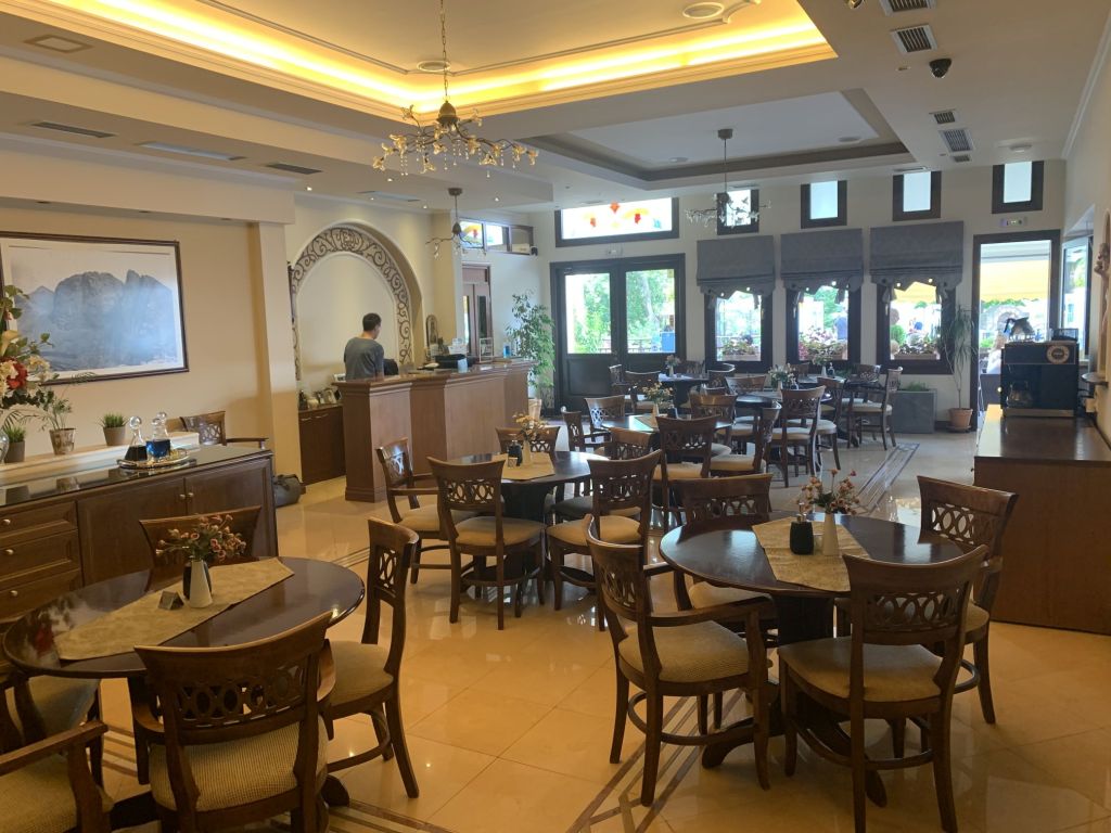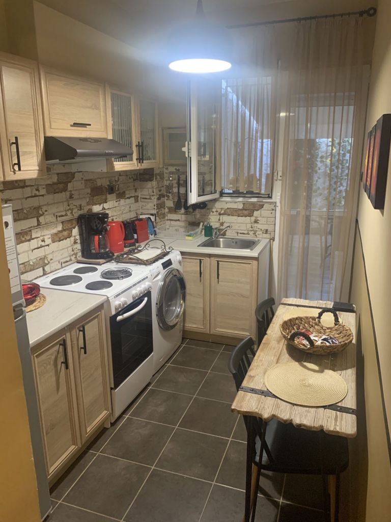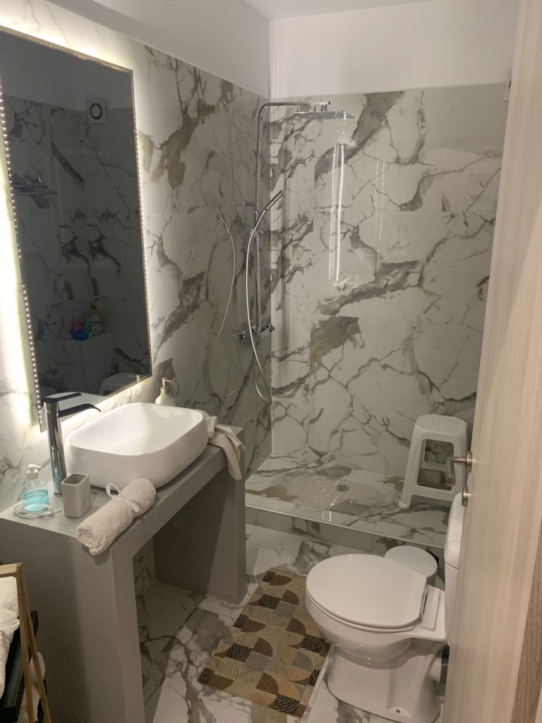 Eleni, die Gastgeberin, empfängt uns, sie heißt uns herzlich willkommen. Sie ist eine sehr nette und hilfsbereite Frau. Sie führt uns in unser Appartement, erklärt uns alles und weist auch auf unsere Nachbarn, „eine sehr nette Familie aus Moldawien“, hin.
