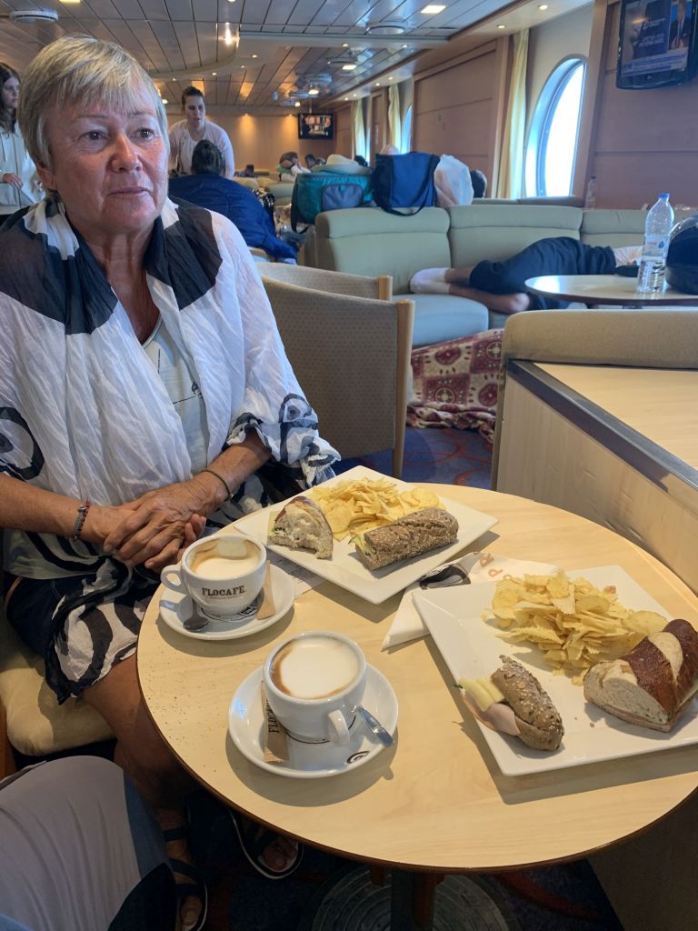 Langsam ging es besser. Ich war abwechselnd eine Stunde in der Lounge, dann eine halbe Stunde in der Kabine – bis zum Nachmittag – dann ließ meine Pein langsam nach und ich konnte mich wieder auf der Fähre bewegen.
