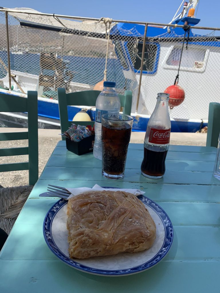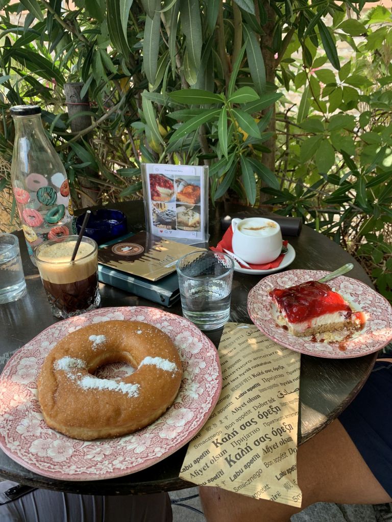 Ich will meinen Chickenpie! Sibylle hat Mitleid und Einsehen und schlägt das „To Paradosiako“ in Agia Marina vor. Sie soll Recht behalten! Das charmante, kleine Café hält den begehrten Pie vor und offeriert ihn gerne…